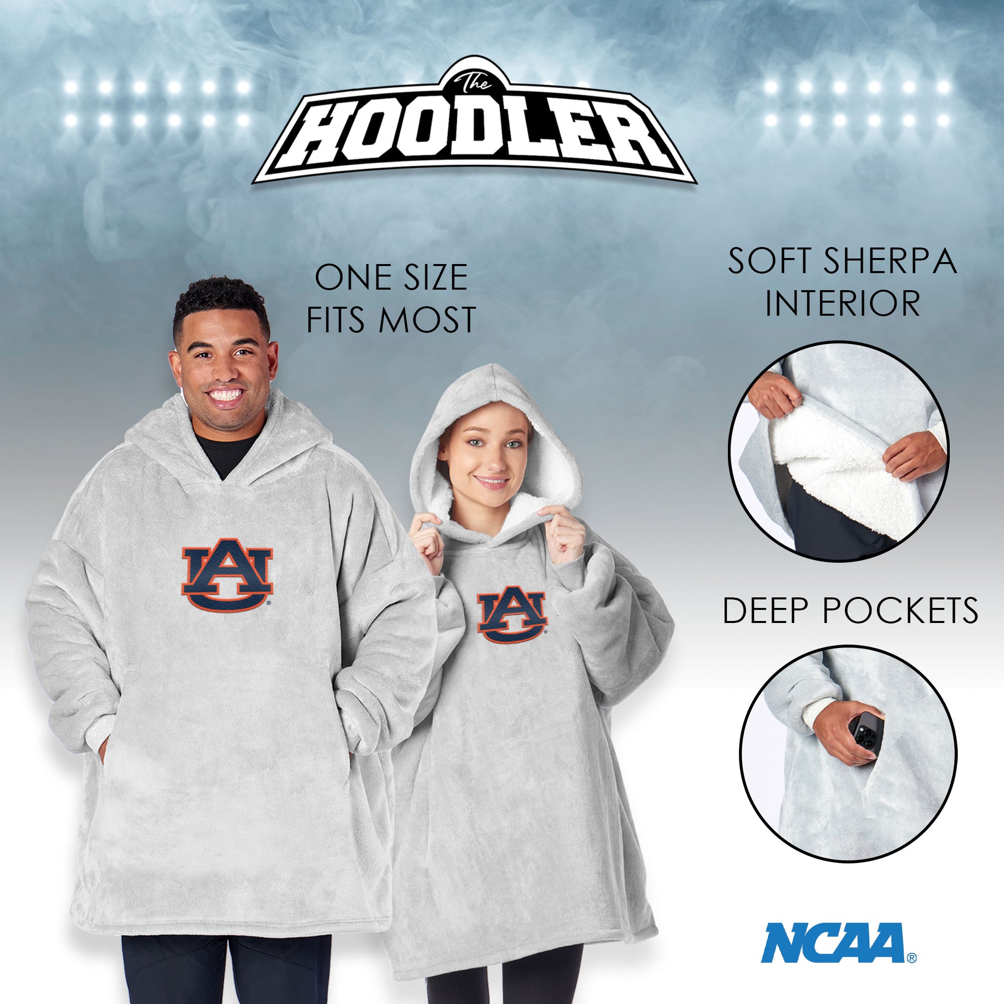 Wrap yourself in ultimate comfort with the NCAA Heather Grey “Hoodler” Pullover Hoodie. This oversized hoodie is designed for cozy moments, with a sherpa-lined interior that feels like you’re wearing a soft, warm blanket. The heather grey color gives it a classic look that pairs perfectly with your favorite lounge attire or game-day outfit. With a large front pocket, you can easily keep your hands warm or stash your phone and snacks while you enjoy some downtime. Whether you’re watching the game, running errands, or just relaxing at home, this hoodie is made for maximum comfort without sacrificing style. Proudly featuring your NCAA team logo, this hoodie shows off your team spirit wherever you go. Whether you’re cheering from the couch or hanging out with friends, the “Hoodler” Pullover Hoodie has you covered, literally and figuratively, for all your cozy, spirited moments.