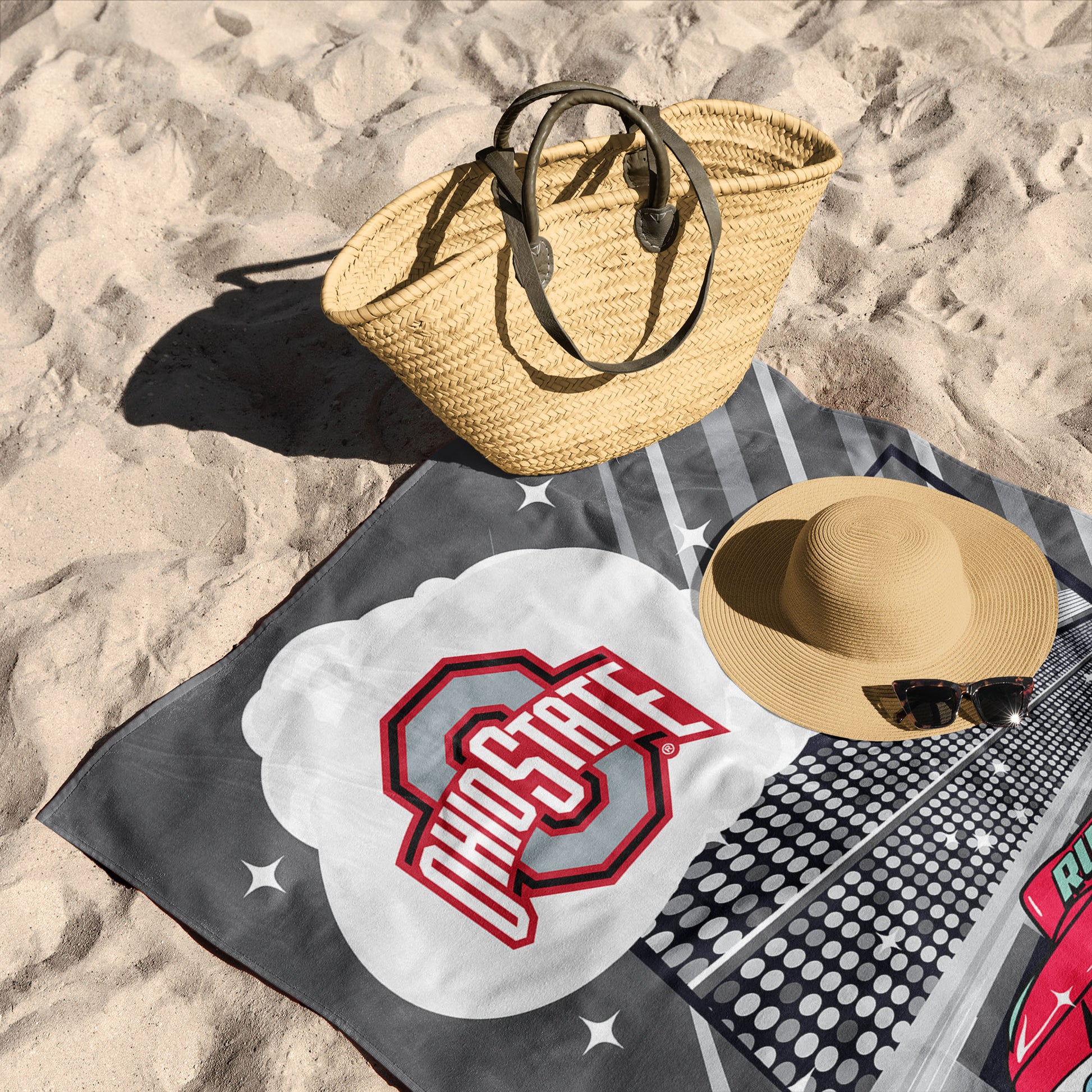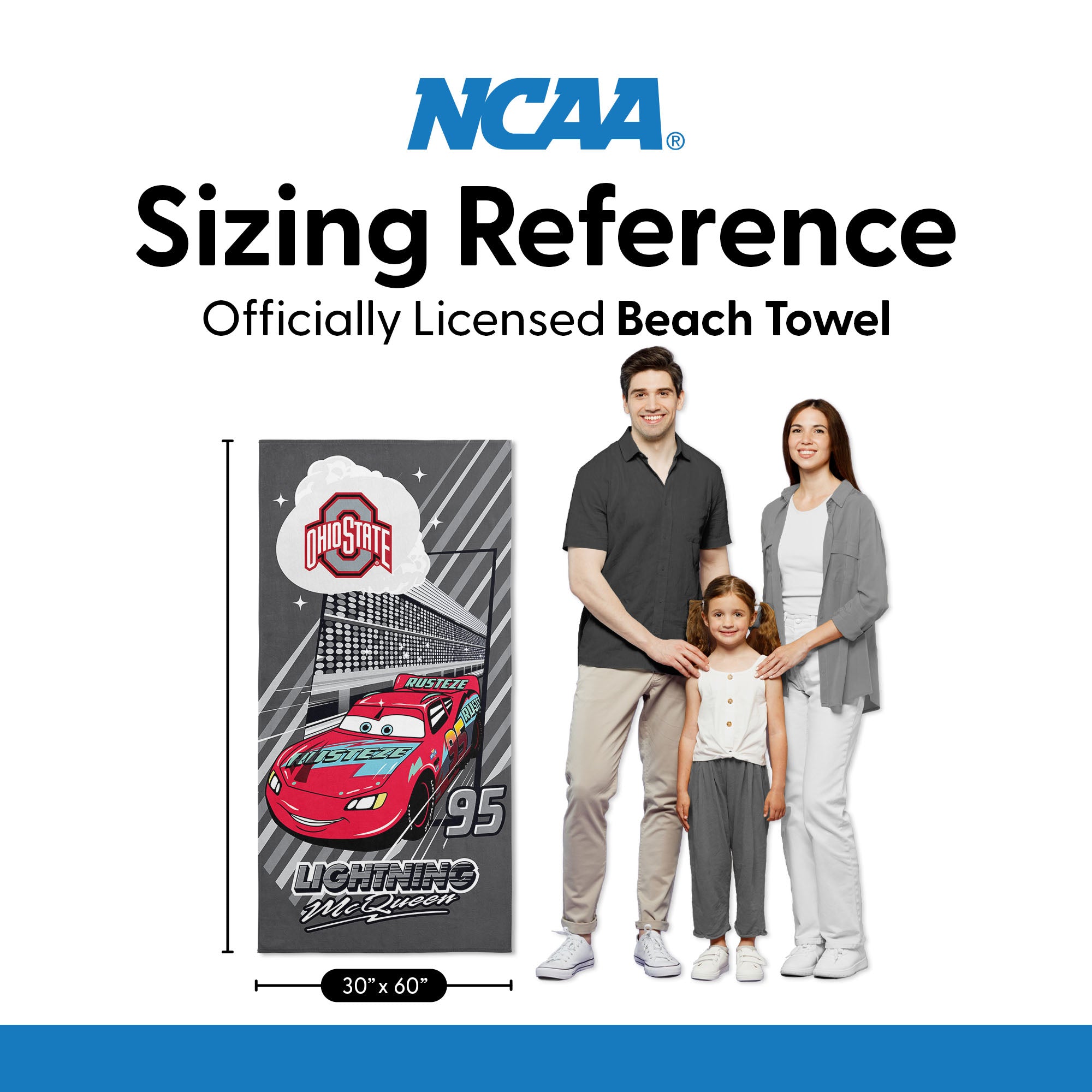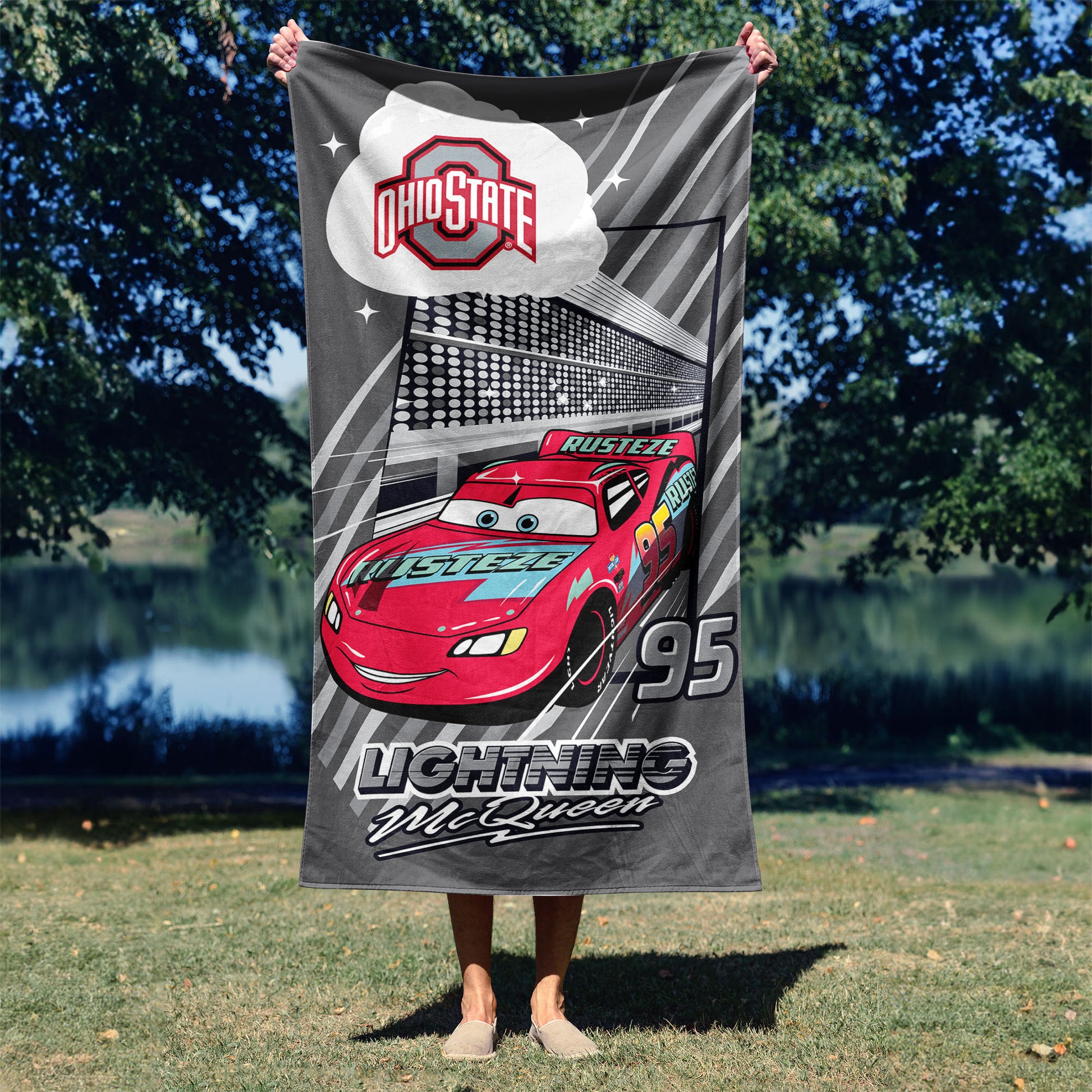 Collegiate Ohio State University Disney Cars Speedline Grey Microfiber Beach Towel 30x60 inches