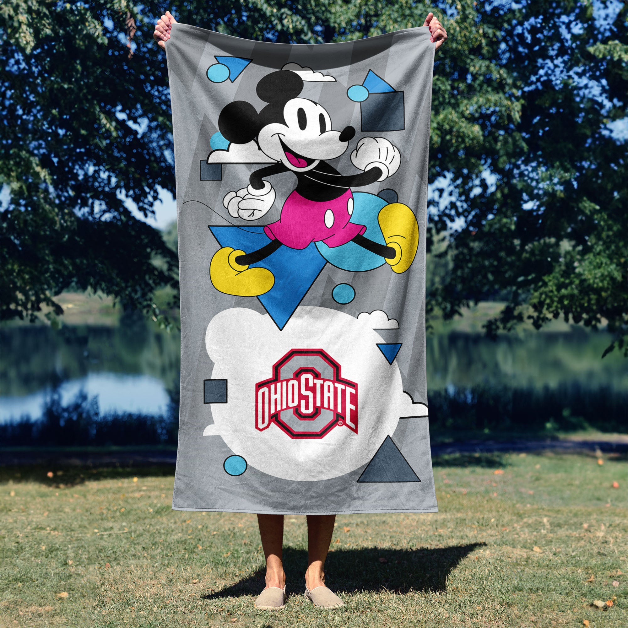• Featuring a cheerful design with Mickey Mouse and playful geometric shapes alongside your favorite team’s logo