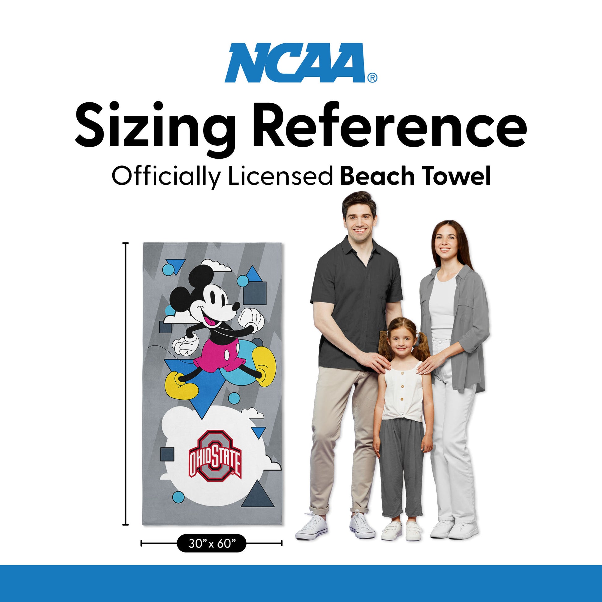 Collegiate Ohio State University Disney Mickey Mouse Good Vibes Grey Microfiber Beach Towel 30x60 inches