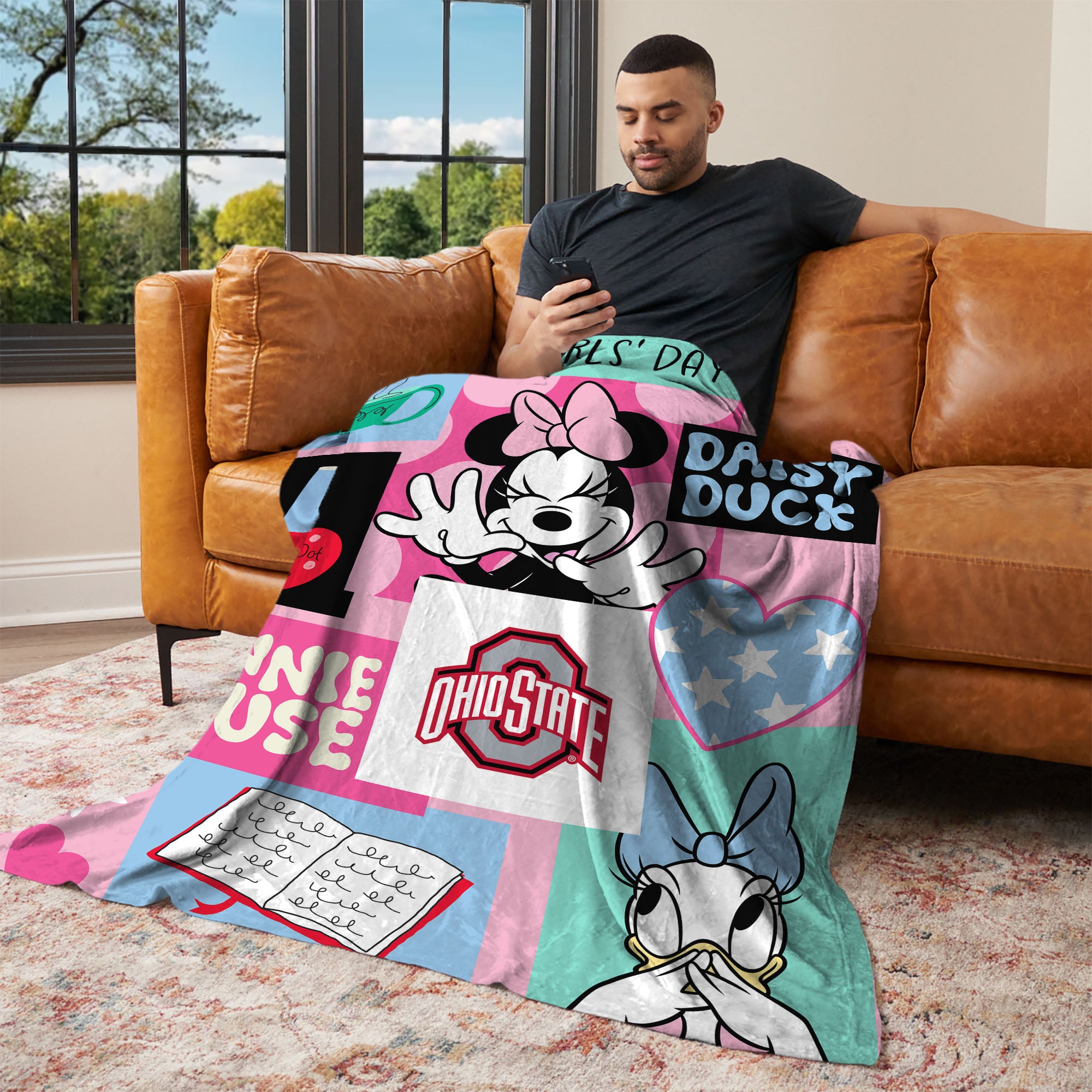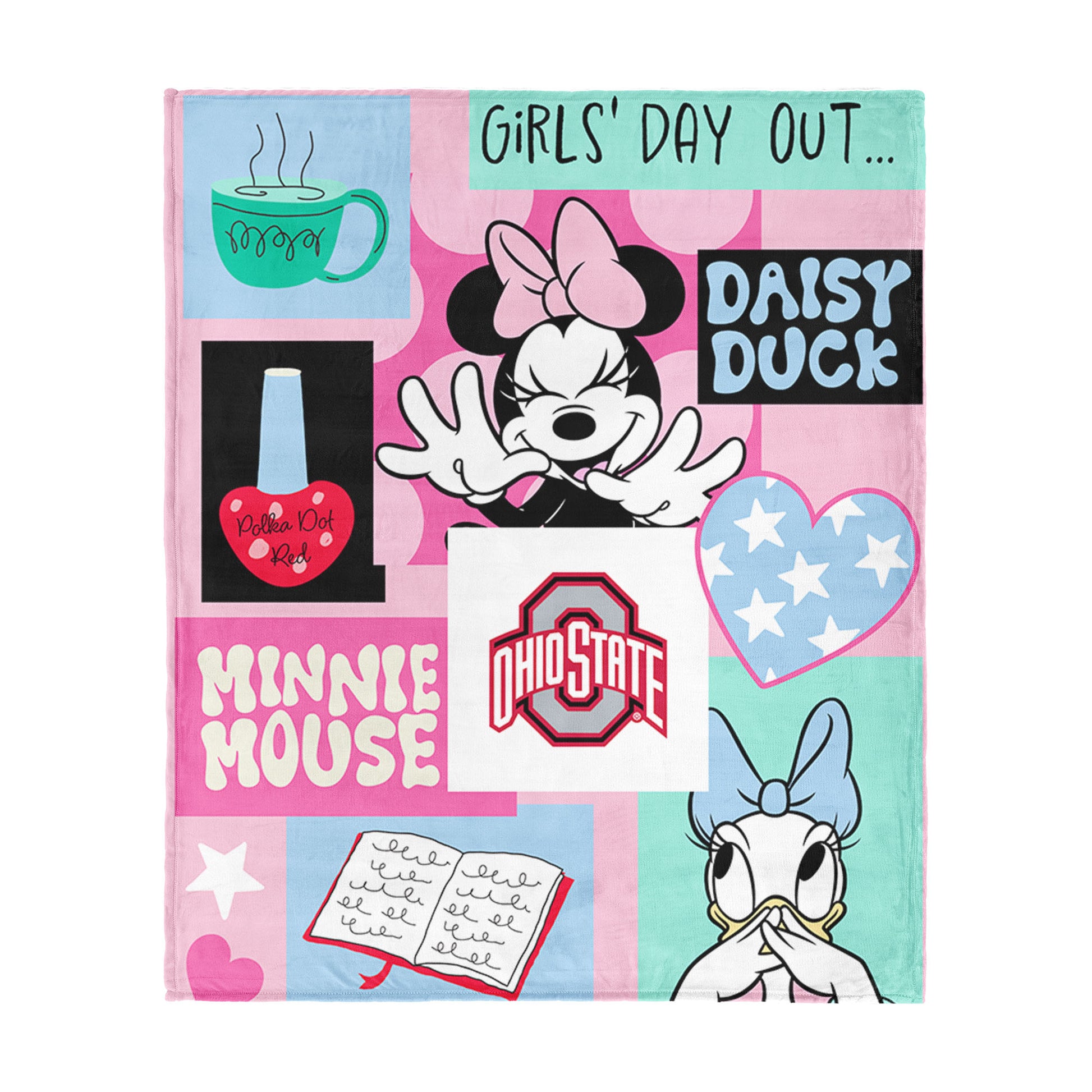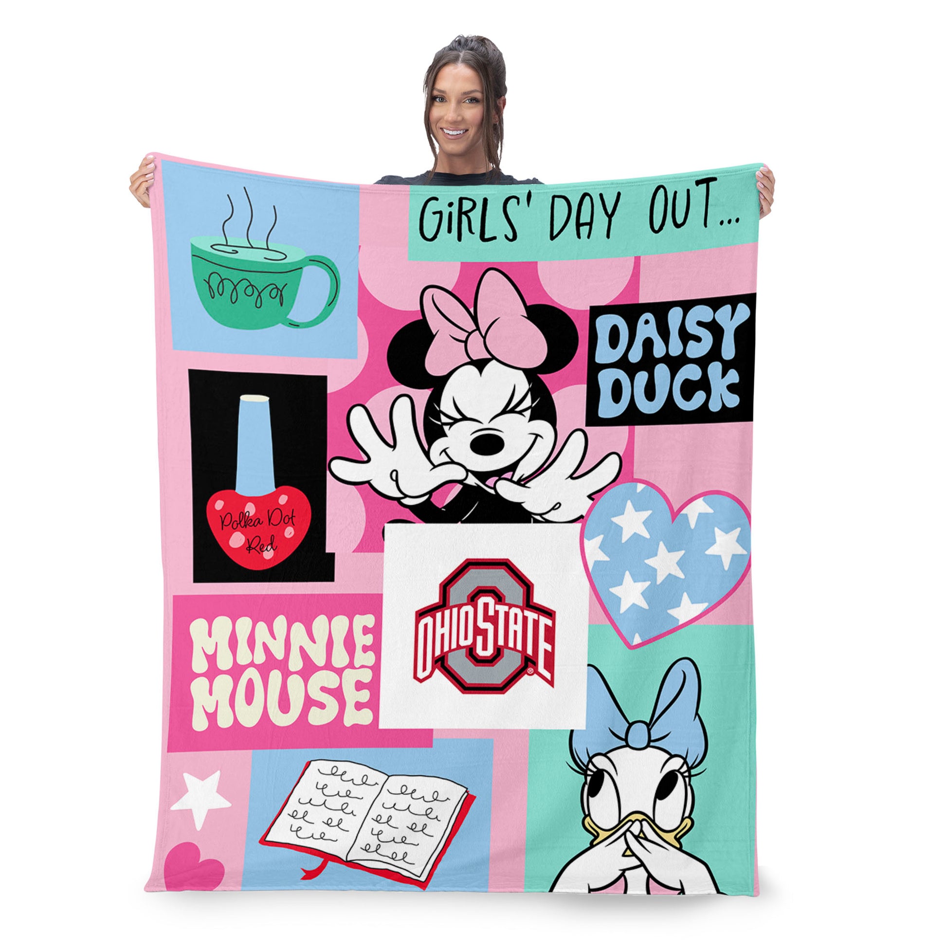 Collegiate Ohio State University Disney Minnie Mouse Checker Floral Pink Silk Touch Throw Blanket 46x60 inches