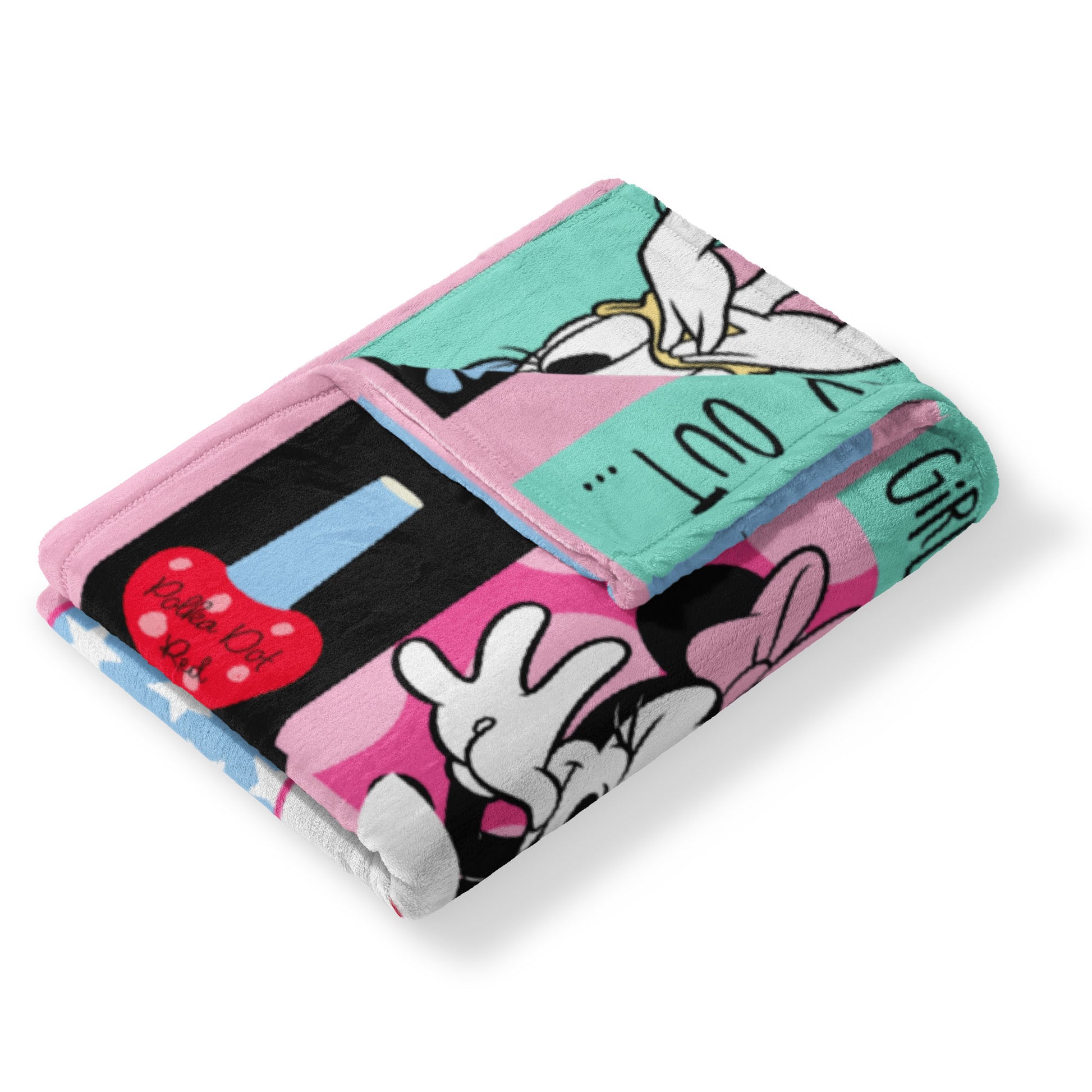 Add a touch of fun, color, and cozy comfort to any space with the Minnie Mouse Checker Floral Silk Touch Throw Blanket. The playful collage-style design featuring Minnie Mouse, Daisy Duck, and your favorite sport team's logo brings bright personality and charm to bedrooms, and playrooms. Crafted from ultra-soft silk touch fabric, this throw blanket offers a smooth and cozy feel that’s perfect for snuggling on the couch, watching your favorite shows, or adding a stylish decorative accent to a bed or chair. The lightweight yet warm material makes it great for year-round comfort while showcasing cheerful graphic elements. Whether you're decorating or looking for a thoughtful gift, this blanket combines comfort, color, and classic Disney sweetness.