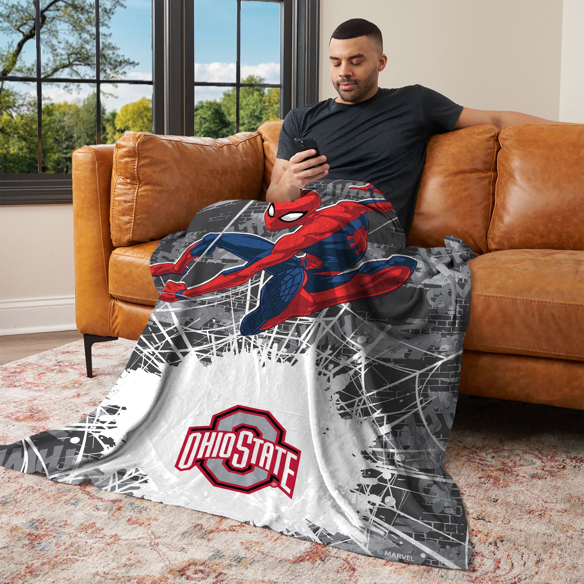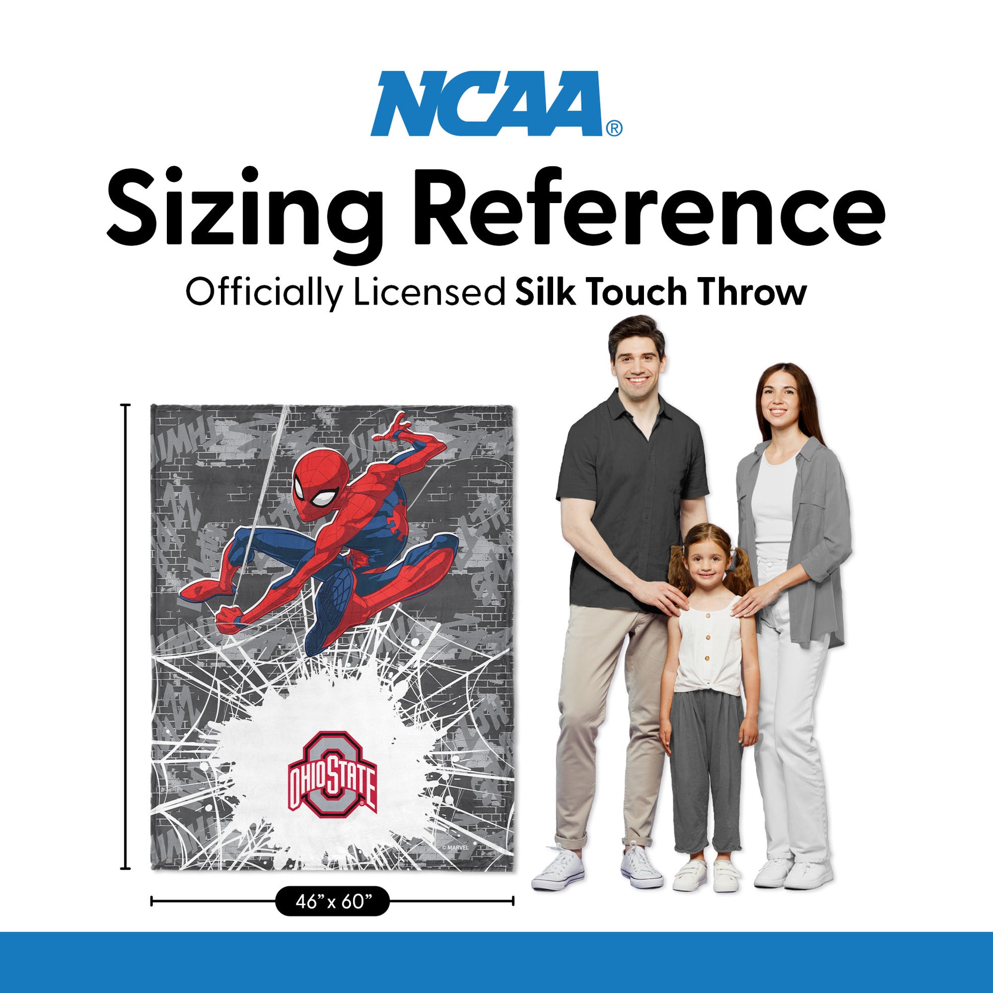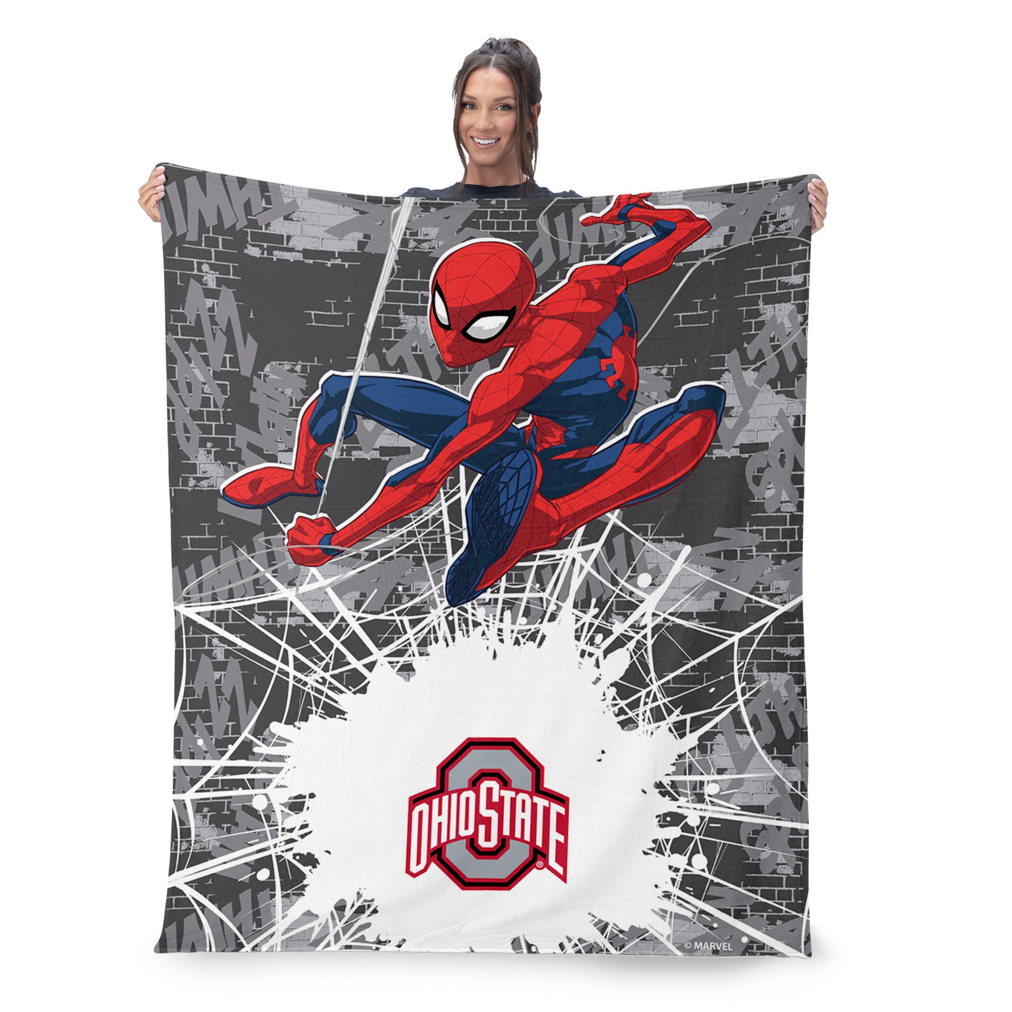 Collegiate Ohio State University Marvel Spider Man Web Sling Grey Silk Touch Throw Blanket 46x60 inches