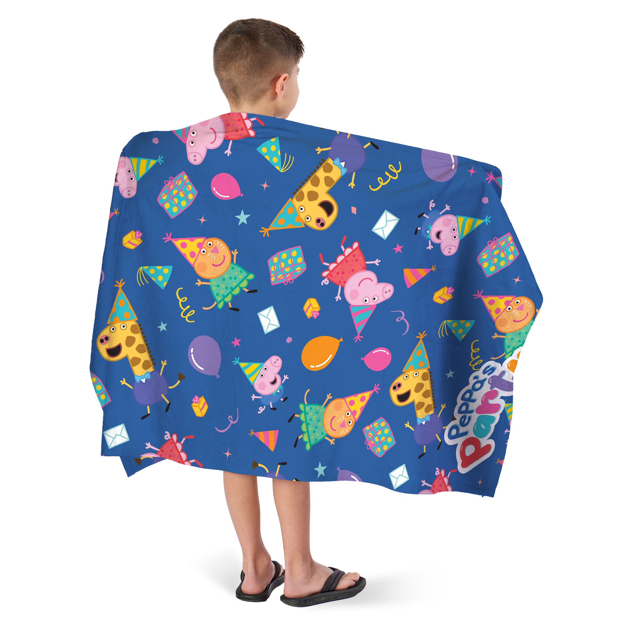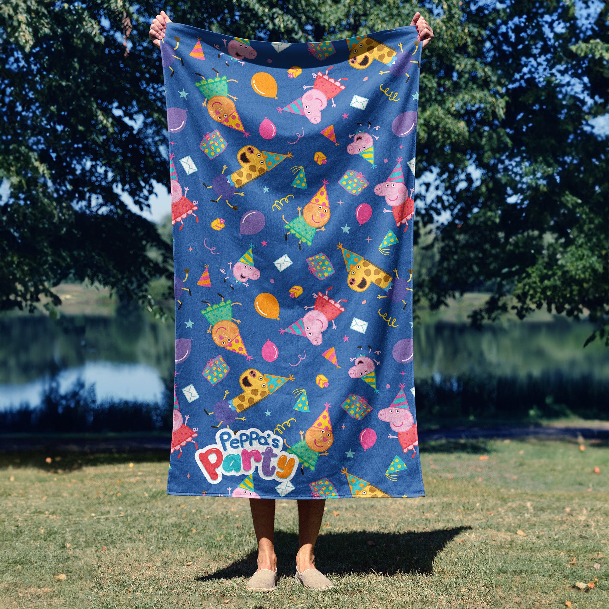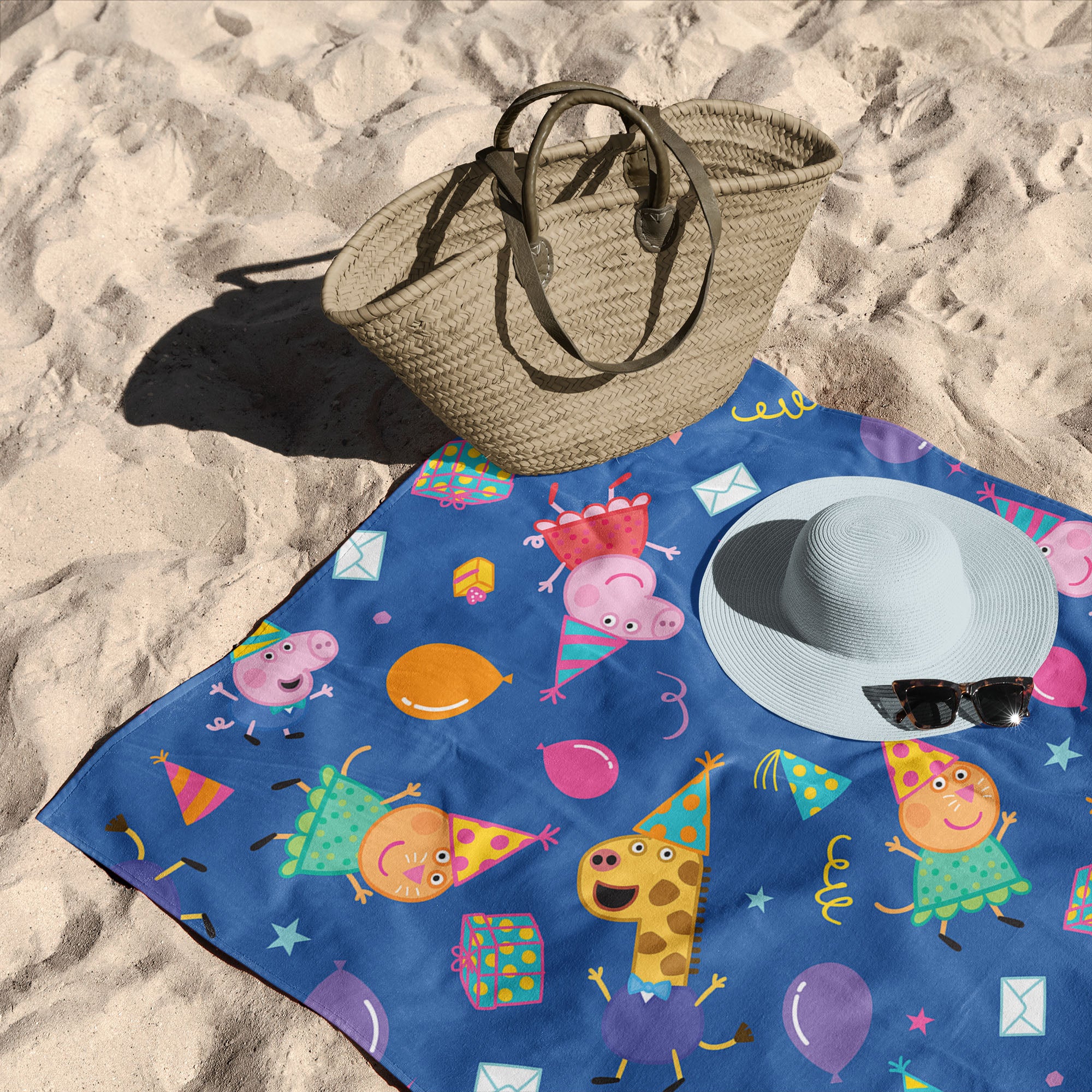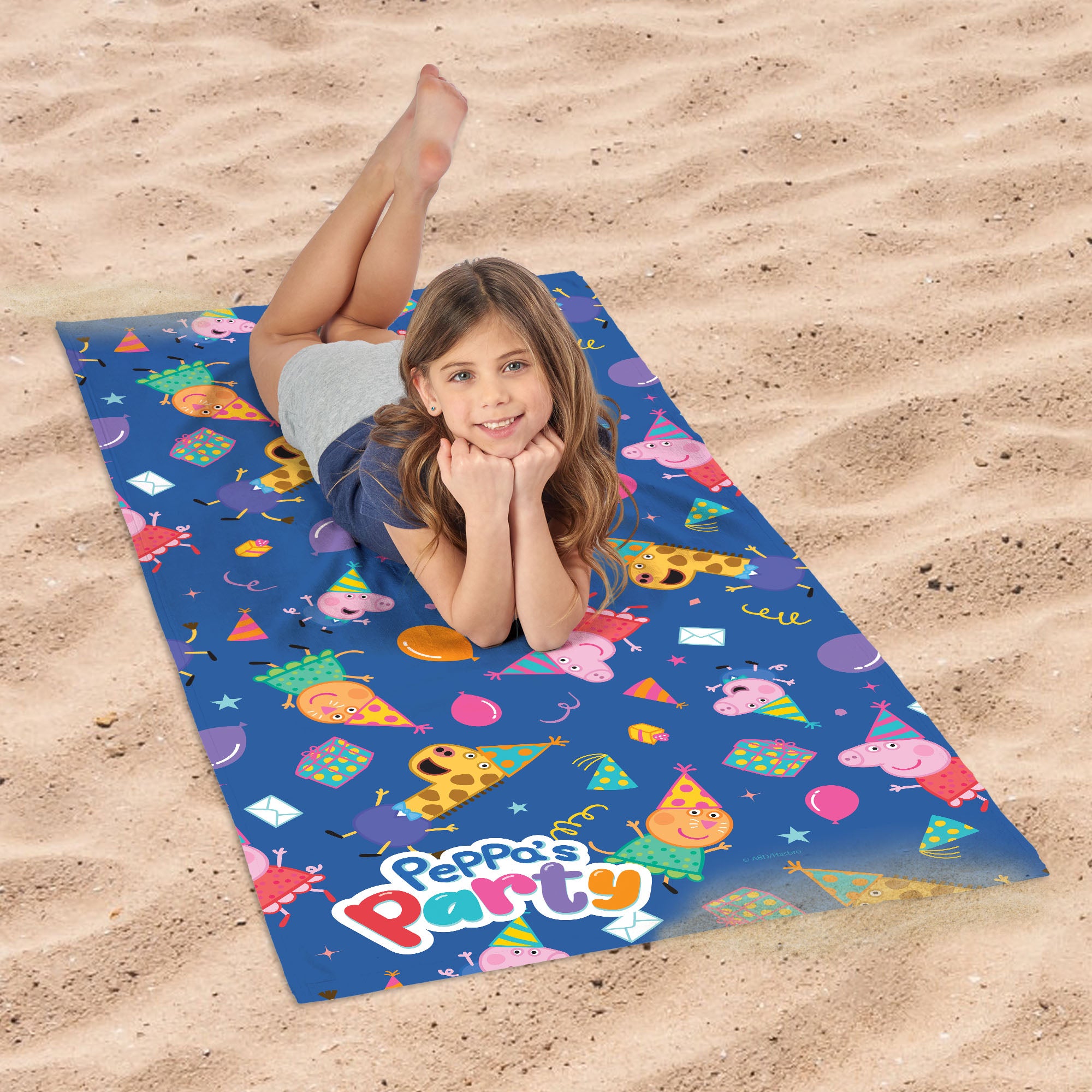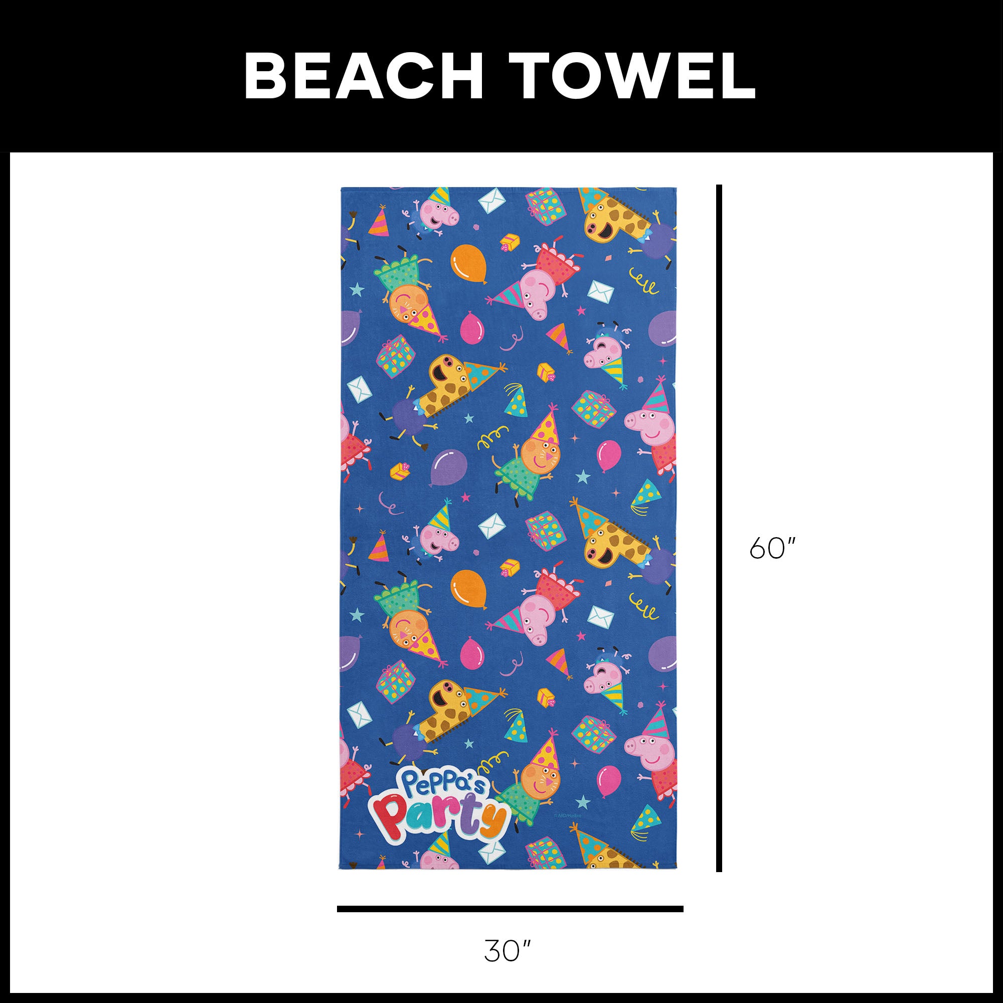 Get ready for a beach party like no other with the Peppa “Party Pattern” Beach Towel! Peppa Pig is all dressed up in her party best, and she’s brought along all her friends for a day of fun in the sun. The towel is splashed with vibrant party images, from balloons to confetti, making every trip to the beach or pool a celebration. Whether you’re soaking up the sun or drying off after a swim, this towel adds a splash of joy to your day. The soft, absorbent material is perfect for wrapping up after a dip, and the playful design is sure to make you smile. Peppa and her pals are ready to bring the party vibes wherever you go, turning every moment into a festive occasion.
