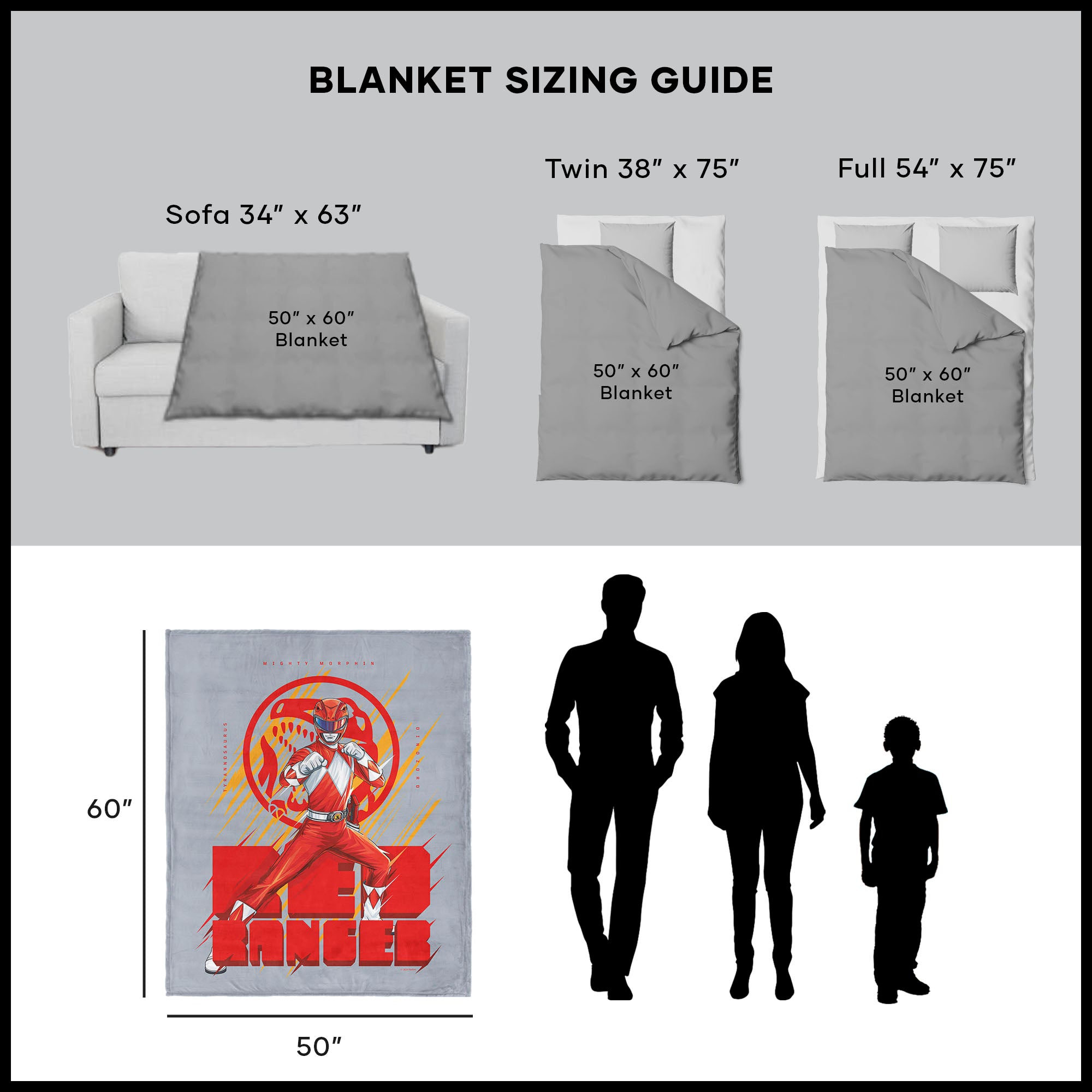 Unleash the power of the Red Ranger with this Hasbro Power Rangers “Red Ranger” Silk Touch Sherpa Throw Blanket. Featuring the fearless Red Ranger in a dynamic action pose, this blanket captures the hero’s strength and determination. Set against a sleek grey background, the design emphasizes the Ranger’s boldness and readiness to face any challenge head-on. Soft, cozy, and full of energy, this throw is perfect for adding a touch of excitement to your space. Whether you’re curling up for a Power Rangers marathon or adding a heroic touch to your room, this blanket brings the Red Ranger’s unstoppable spirit into your home.