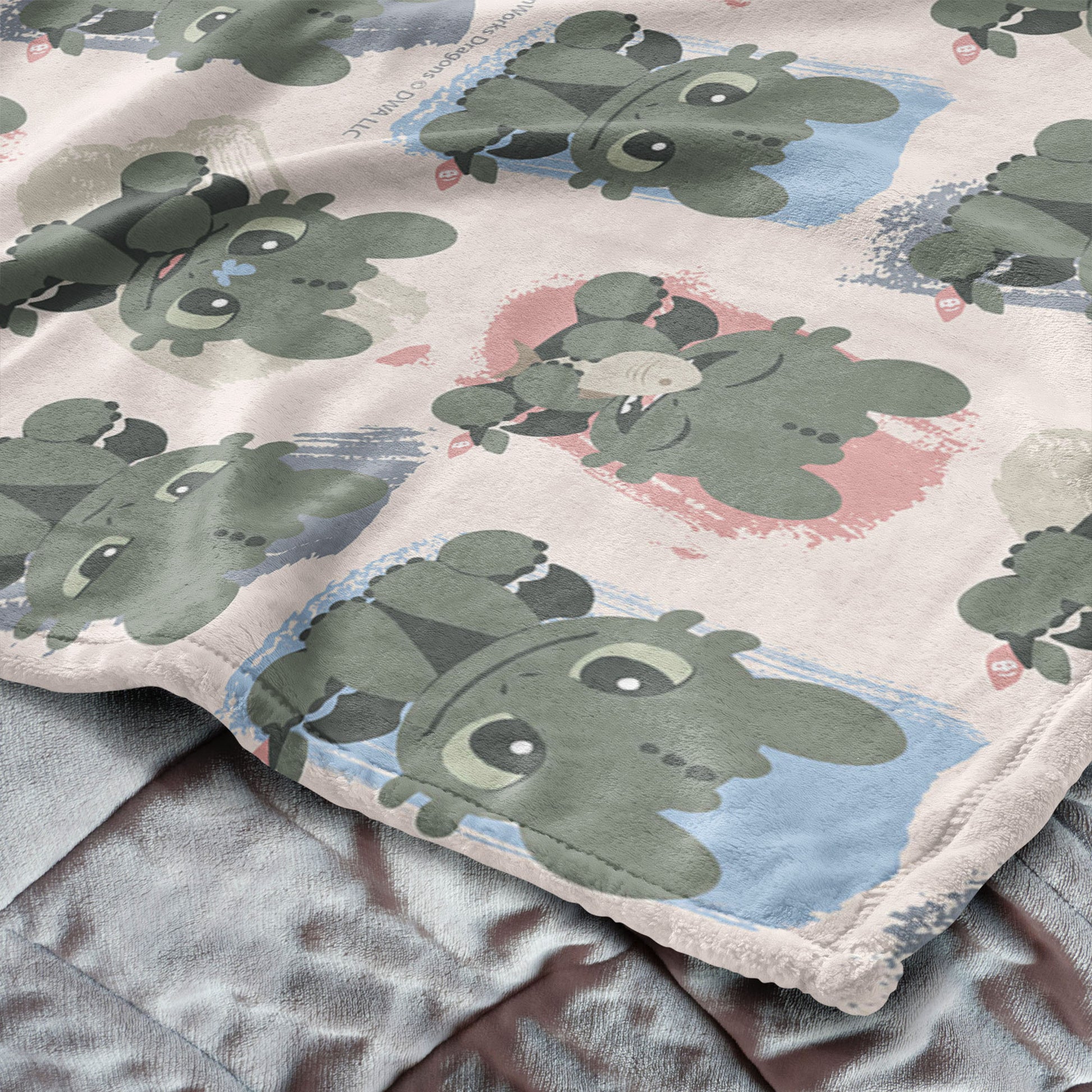 Show off every adorable side of your favorite dragon with the Universal How to Train Your Dragon “Many Emotions” Silk Touch Throw Blanket, featuring a playful all-over pattern of Toothless in different cute moods against soft splashes of pastel pink, blue, and gray. From curious eyes to cheeky grins, each little Toothless brings a pop of personality that fans will love to spot. Made with ultra-soft silk touch fabric, this blanket wraps you in warmth and comfort, whether you’re lounging on the couch, watching your favorite dragon adventures, or drifting off to sleep. Each design detail captures Toothless’s charm in a fun, whimsical way, adding a dash of dragon magic to any room with a repeating pattern that feels light and cheerful. Perfect for dragon lovers of all ages, this blanket is an invitation to snuggle up with your favorite Night Fury every day, letting every sweet Toothless expression bring a smile to your face and a touch of Berk’s magic to your cozy moments.
