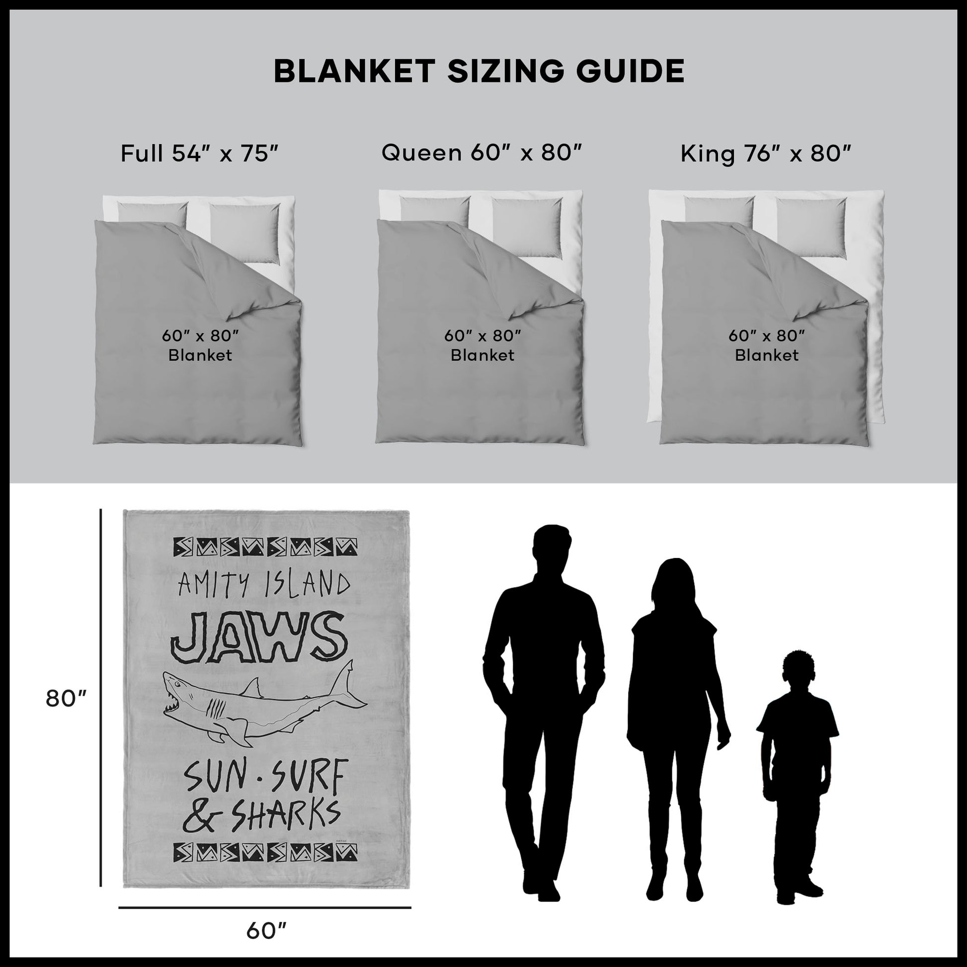 Sink into cozy island vibes with the Universal Jaws “Amity Island” Silk Touch Throw Blanket, featuring a bold shark graphic, iconic Jaws lettering, and beachy “Sun, Surf & Sharks” slogan. Made with ultra-soft, velvety fabric, it’s the perfect way to add a splash of cinematic fun to your movie nights or lazy weekends. Fans of the classic thriller will love wrapping up in this playful nod to Amity Island while staying warm and comfortable all year long. Lightweight yet plush, it’s easy to drape over a couch, bed, or favorite chair for instant character. Whether you’re gifting it to a fellow shark fan or treating yourself, this blanket brings a bite of nostalgia and a lot of softness to any space. Cuddle up, stay warm, and show your love for a timeless movie legend.