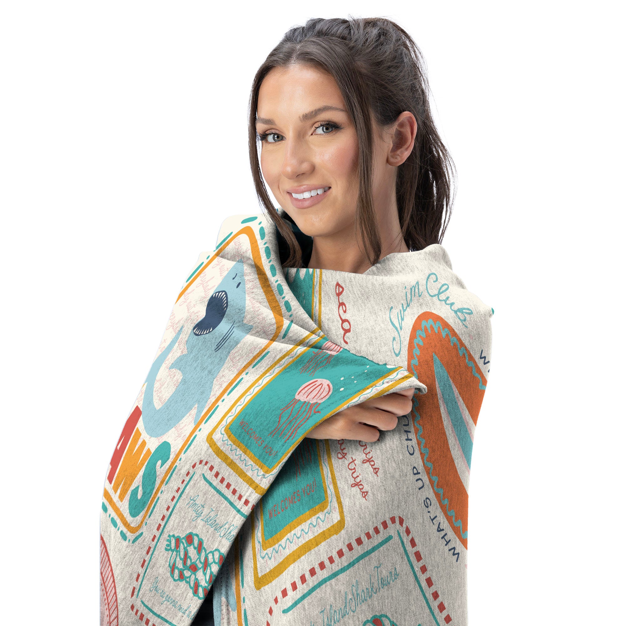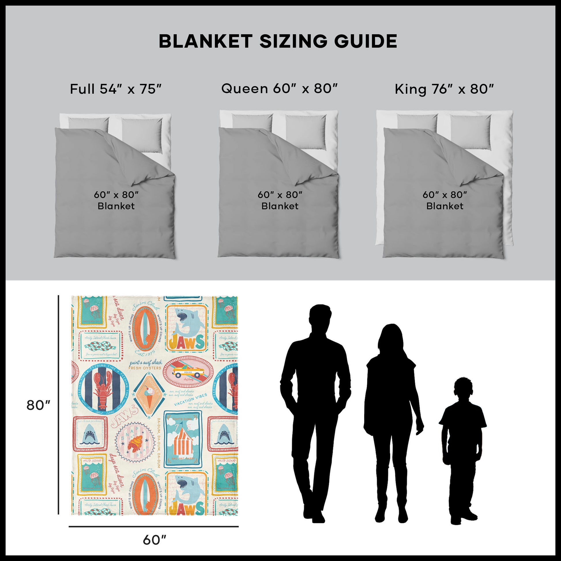 Send cozy vibes with the Universal Jaws “Jaws Post Stamps” Silk Touch Throw Blanket, featuring a playful repeating pattern of vintage-inspired stamps, seaside icons, and classic shark graphics. Made with ultra-soft, velvety fabric, it’s the perfect blend of retro charm and movie nostalgia for fans of the iconic thriller. From ice cream cones and lifeguard cars to surfboards and sharks, every detail adds a touch of vacation fun and coastal adventure to your space. Lightweight yet plush, it’s great for draping over your bed, couch, or favorite chair for a splash of personality. Perfect for gifting or keeping all to yourself, this blanket brings comfort and character together in one super-soft package. Wrap up, get cozy, and relive the timeless thrills of Jaws in a style that’s as fun as it is relaxing.