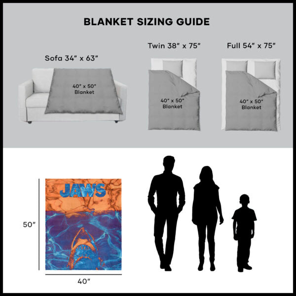 Turn up the retro vibes with the Universal Jaws “Neon Poster” Silk Touch Throw Blanket, featuring a bold pop-art inspired design with vibrant orange and electric blue tones of the iconic shark scene. Made with ultra-soft, velvety fabric, it’s the perfect way to add eye-catching color and movie nostalgia to your space. Fans of the legendary thriller will love the vintage comic-style look that brings an edgy twist to a timeless classic. Lightweight yet plush, it’s easy to toss over your couch, bed, or favorite chair for a splash of dramatic flair. Perfect for gifting to any Jaws lover or keeping all to yourself, this blanket combines cozy comfort with unmistakable style. Wrap up, stay warm, and relive your favorite suspenseful moments in bright, bold fashion.