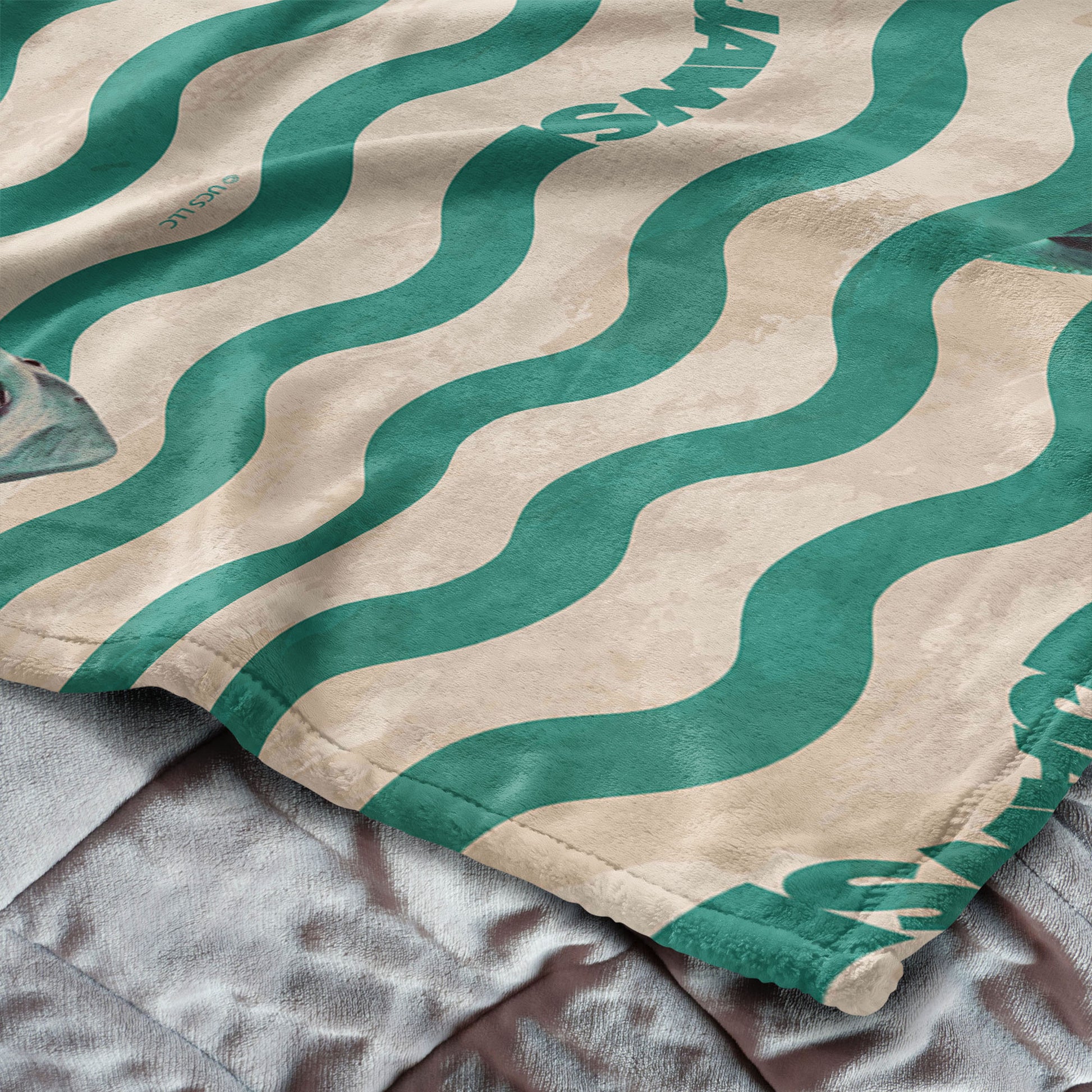 Make a splash in your space with the Universal Jaws “Psychedelic Sea” Silk Touch Throw Blanket, featuring a groovy repeating pattern of wavy teal stripes and the iconic shark head peeking through. Made with ultra-soft, velvety fabric, it’s the perfect blend of retro style and cozy movie-night comfort for fans of the classic thriller. Bold colors and hypnotic waves add a fun twist to any bed, couch, or home theater, while the repeating design keeps your Jaws fandom front and center. Lightweight yet plush, it’s easy to grab for extra warmth or to display as a standout accent. Perfect for gifting or treating yourself, this blanket delivers a soft, laid-back vibe with a touch of suspenseful nostalgia. Wrap up, relax, and channel your inner shark fan every time you cuddle up.