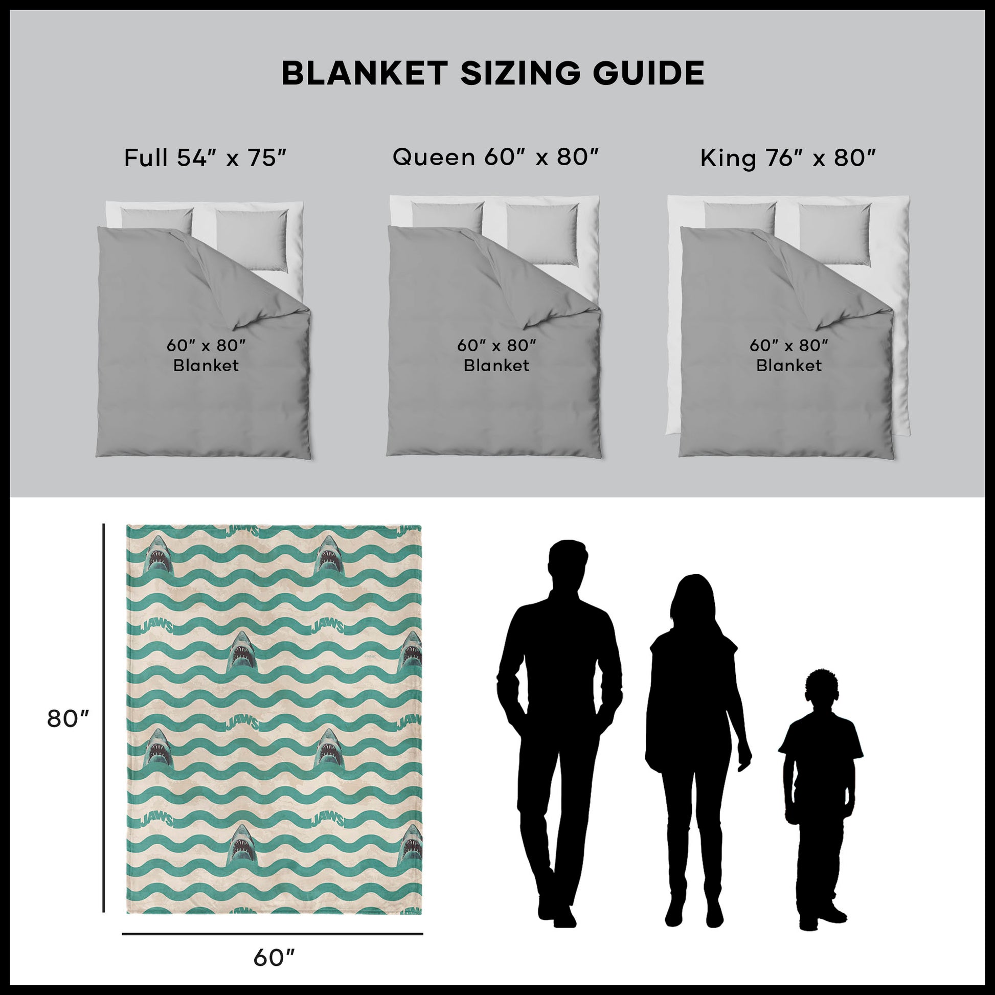 Make a splash in your space with the Universal Jaws “Psychedelic Sea” Silk Touch Throw Blanket, featuring a groovy repeating pattern of wavy teal stripes and the iconic shark head peeking through. Made with ultra-soft, velvety fabric, it’s the perfect blend of retro style and cozy movie-night comfort for fans of the classic thriller. Bold colors and hypnotic waves add a fun twist to any bed, couch, or home theater, while the repeating design keeps your Jaws fandom front and center. Lightweight yet plush, it’s easy to grab for extra warmth or to display as a standout accent. Perfect for gifting or treating yourself, this blanket delivers a soft, laid-back vibe with a touch of suspenseful nostalgia. Wrap up, relax, and channel your inner shark fan every time you cuddle up.