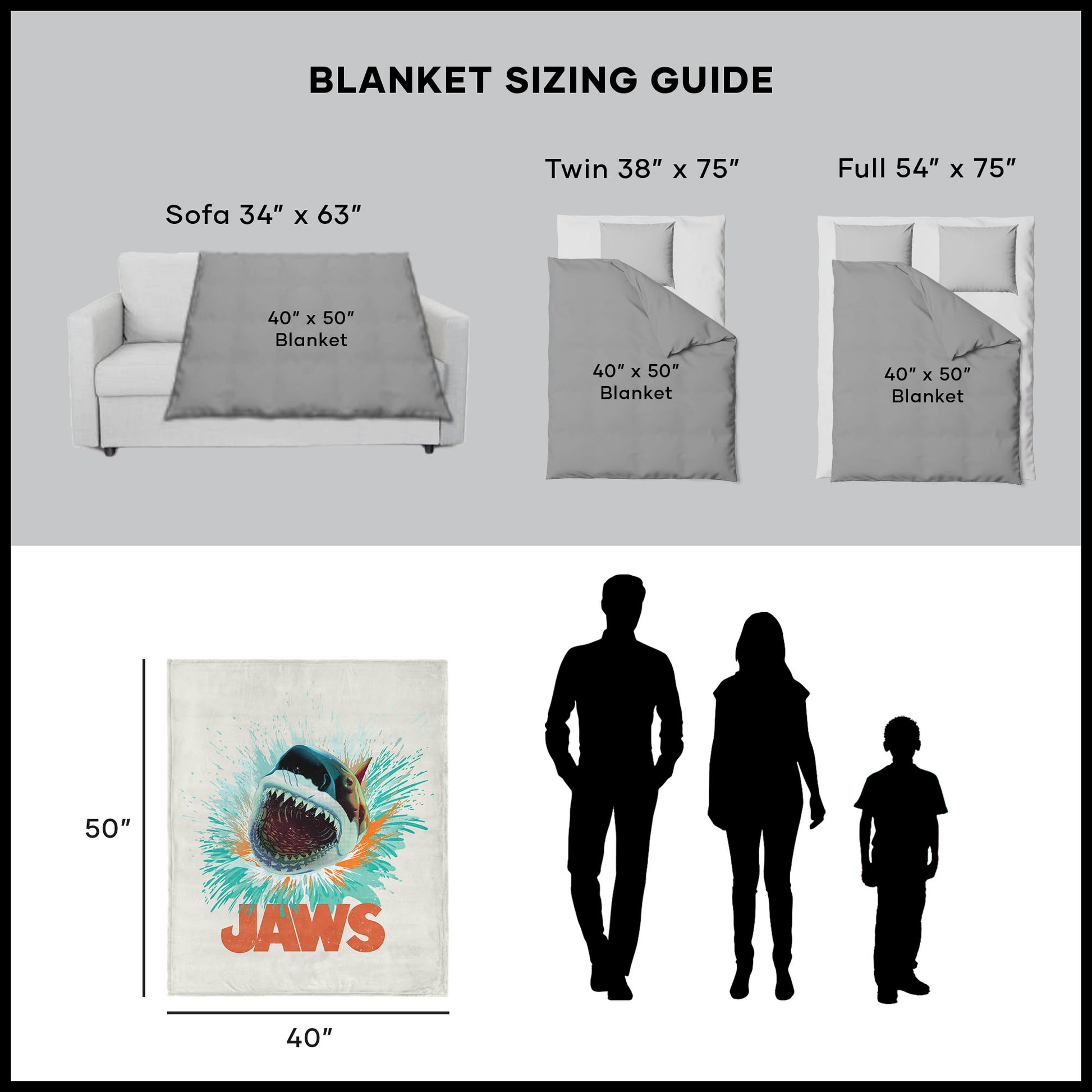 Make your lounge time pop with the Universal Jaws “Shark Splash” Silk Touch Throw Blanket, featuring a fierce open-mouthed shark bursting through a splash of vibrant teal, orange, and white with bold Jaws lettering underneath. Made with ultra-soft, velvety fabric, it’s the ultimate statement piece for cozy movie nights and fans of the legendary thriller. Bright colors and dynamic artwork bring big energy to any couch, bed, or fan cave, creating a standout accent that’s as fun as it is comfy. Lightweight yet plush, it’s easy to grab for extra warmth while watching your favorite shark scenes. Perfect for gifting to fellow Jaws lovers or keeping all to yourself, this blanket delivers nostalgic chills with a modern twist. Snuggle up, stay warm, and show off your love for one of cinema’s most unforgettable creatures.