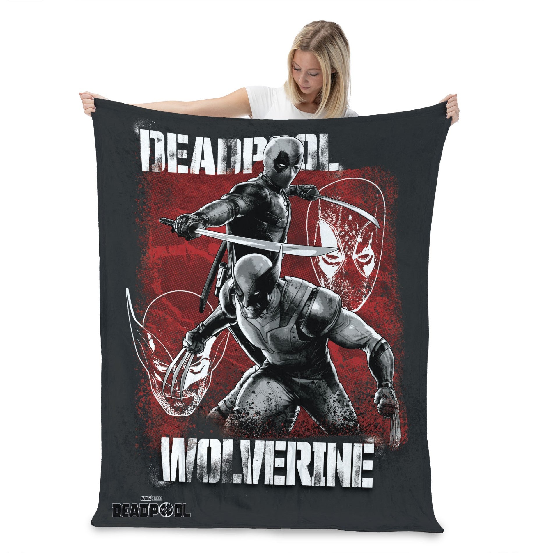 Get ready for action with the Deadpool & Wolverine "It's Time For" Silk Touch Throw Blanket. Featuring Deadpool and Wolverine with weapons drawn, this blanket captures their fierce and dynamic energy. Deadpool's name at the top and Wolverine's at the bottom make it a bold tribute to these iconic Marvel characters. Crafted from soft and luxurious material, this Silk Touch Throw Blanket offers unmatched comfort and warmth. Perfect for cozying up during your favorite Marvel marathons or adding a striking touch to your bedroom or living room, this blanket delivers both style and functionality. The vivid design ensures Deadpool and Wolverine are always in the spotlight. Bring the excitement and adventure of the Marvel Universe into your home with this dynamic and stylish throw!