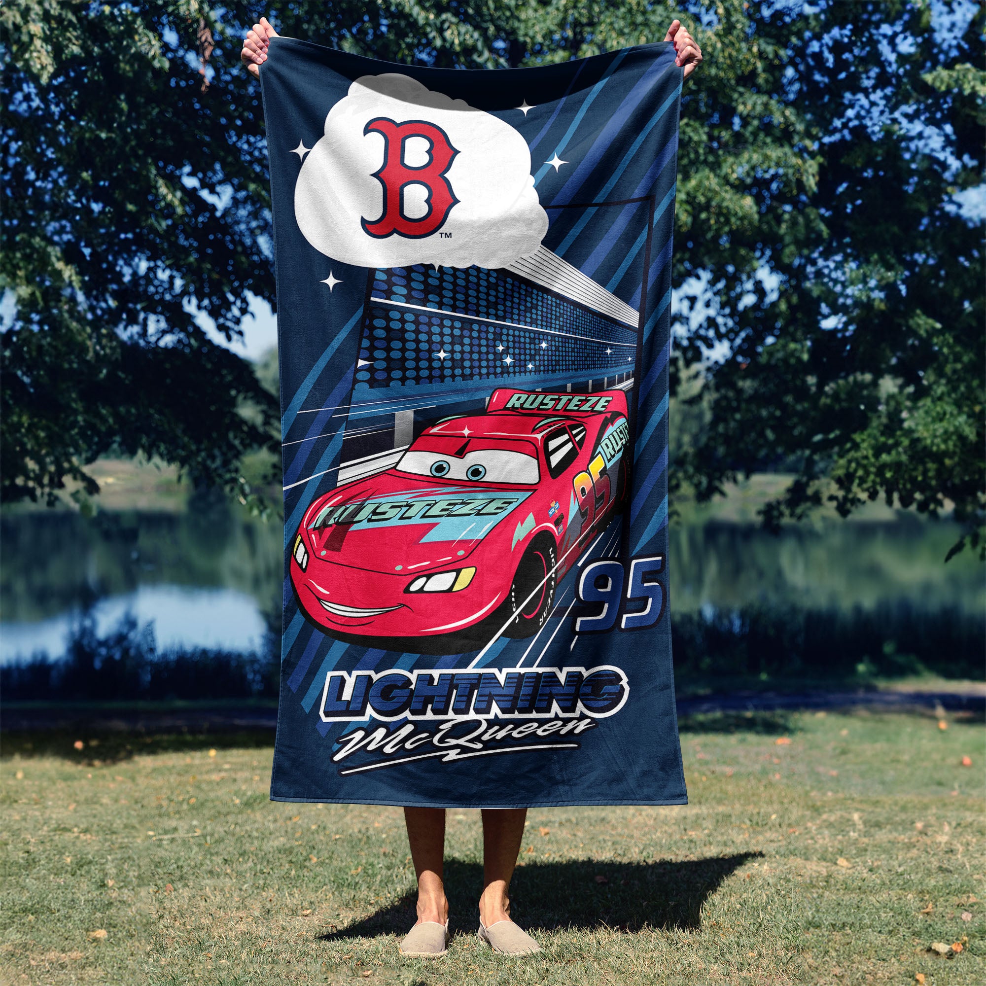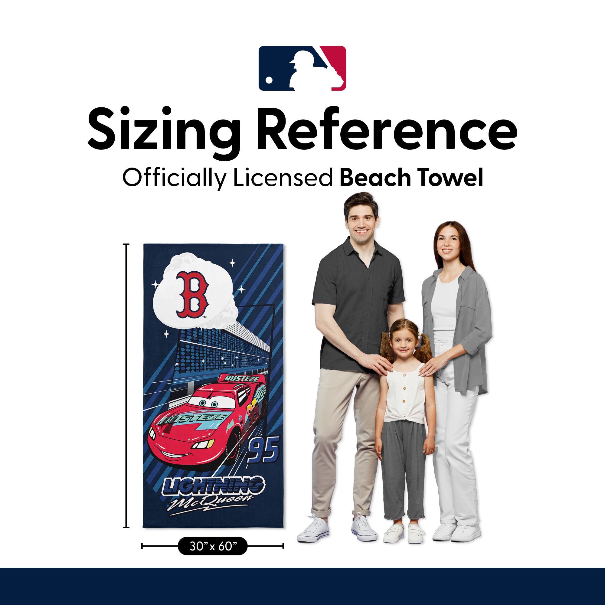 MLB Boston Red Sox Disney Cars Speedline Navy Microfiber Beach Towel 30x60 inches