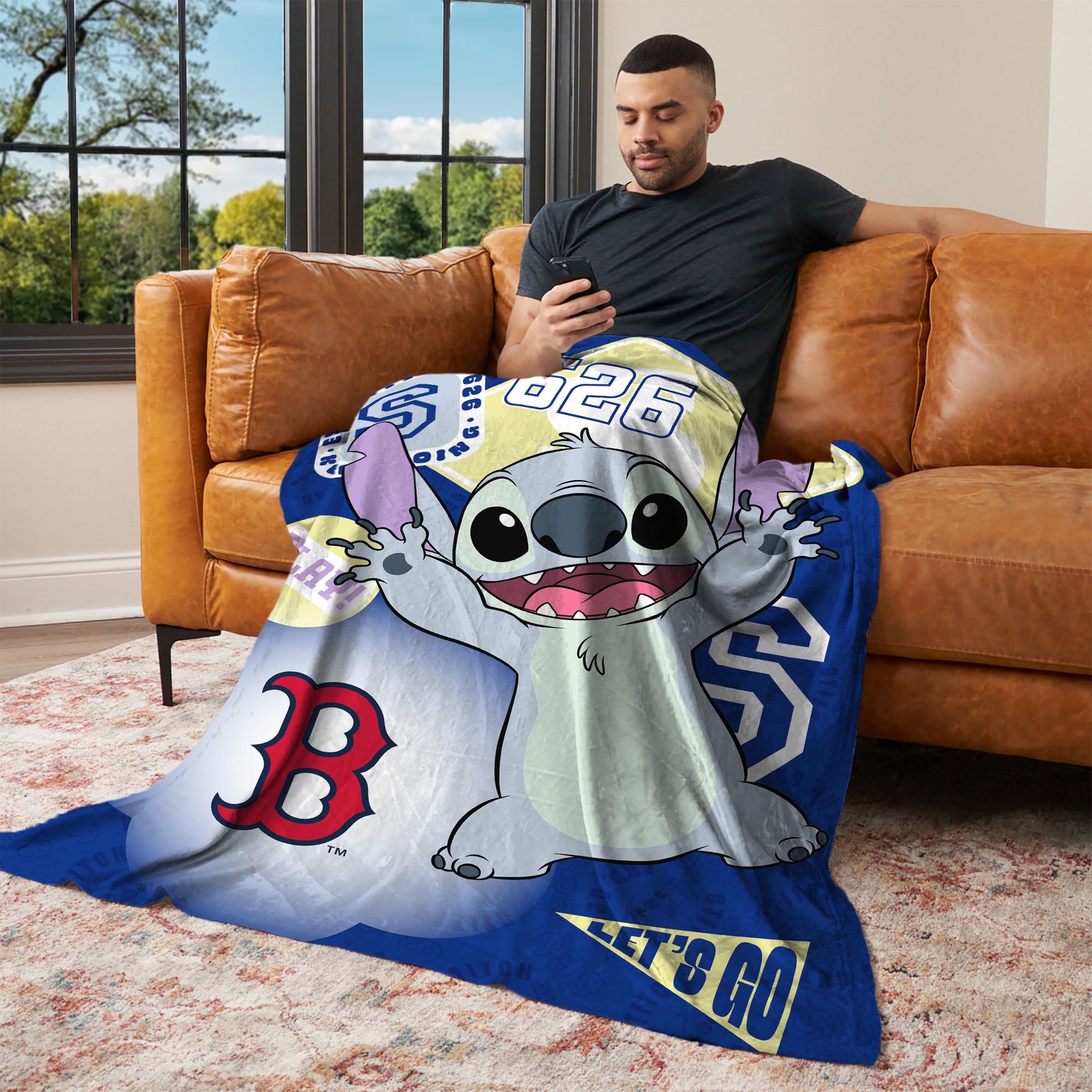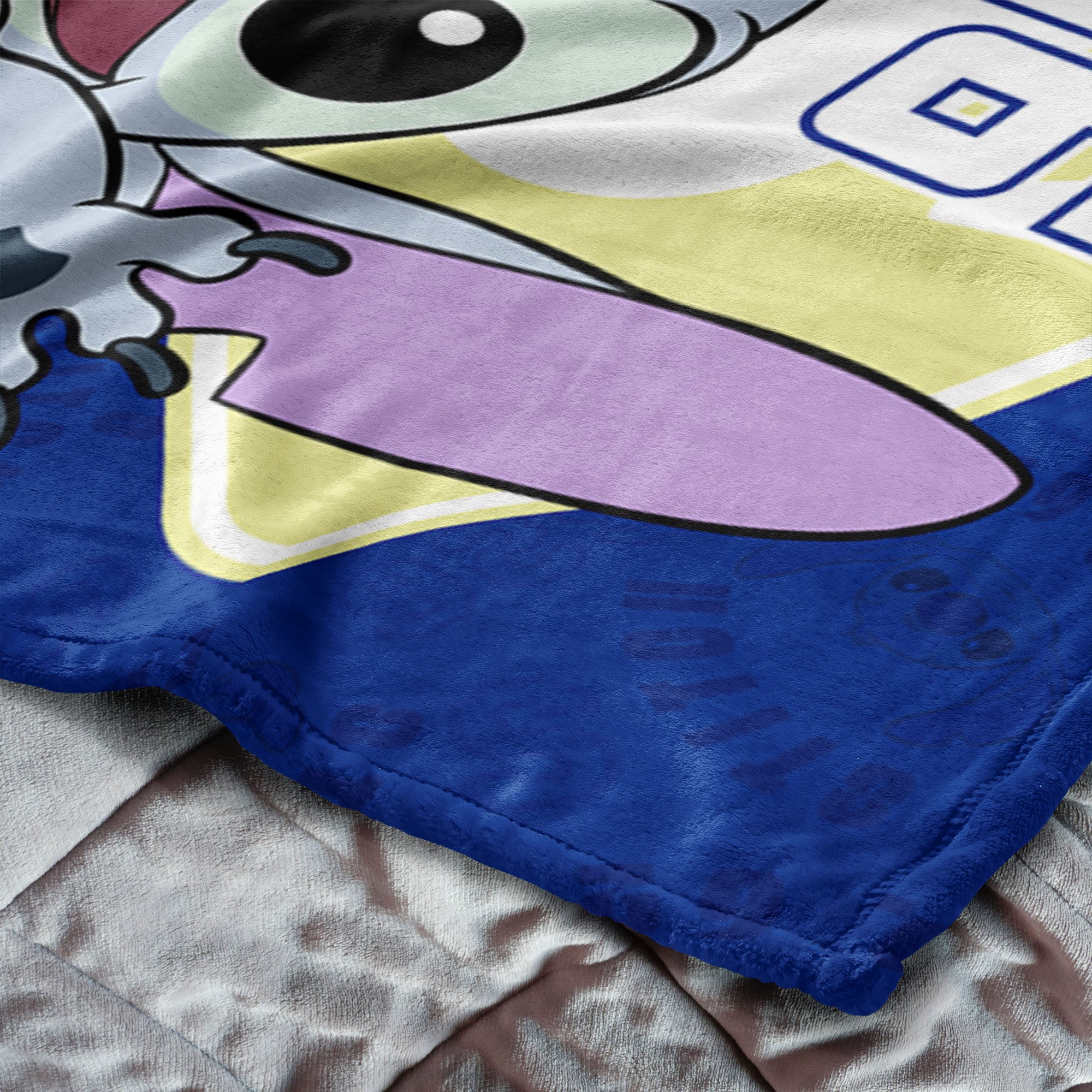 Add playful energy and cozy comfort to any space with the Lilo & Stitch Stickers Silk Touch Throw Blanket. Featuring a fun sticker-style design with Stitch surrounded by playful elements and your favorite sports team's logo. This blanket brings a cheerful and adventurous vibe to bedrooms, living rooms, or cozy movie nights. Made from ultra-soft silk touch fabric, this throw provides a smooth, comfortable feel that’s perfect for relaxing on the couch, snuggling up during story time, or adding a vibrant decorative accent to a bed or chair. The lightweight yet warm material makes it ideal for year-round comfort while showcasing the classic Lilo & Stitch fans know and love. Whether you're decorating a themed room or looking for a thoughtful gift, this blanket delivers both comfort and character-filled style.