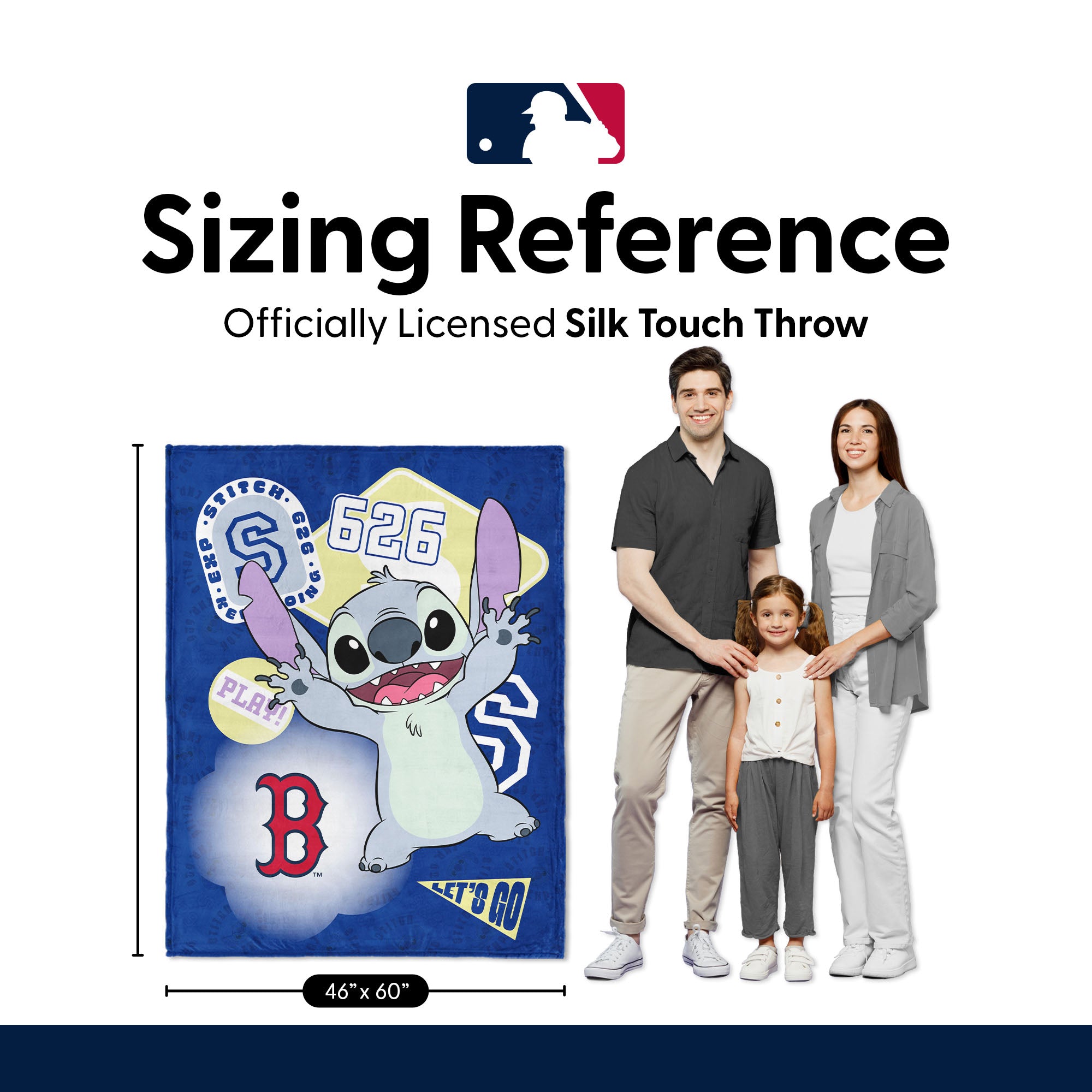 MLB Boston Red Sox Disney Lilo & Stitch Stickers Royal Silk Touch Throw Blanket 46x60 inches