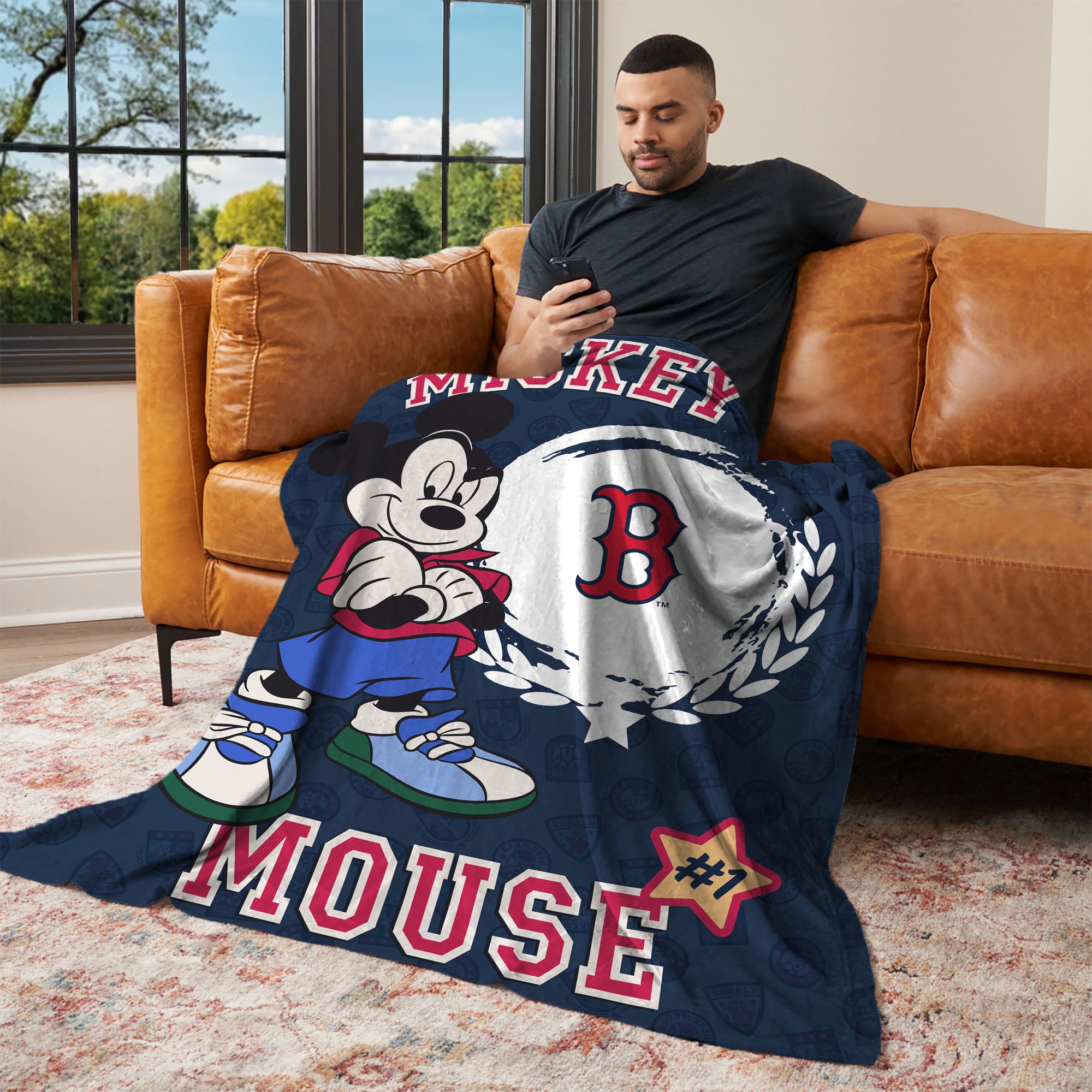 MLB Boston Red Sox Disney Mickey Mouse Baller Navy Silk Touch Throw Blanket 46x60 inches