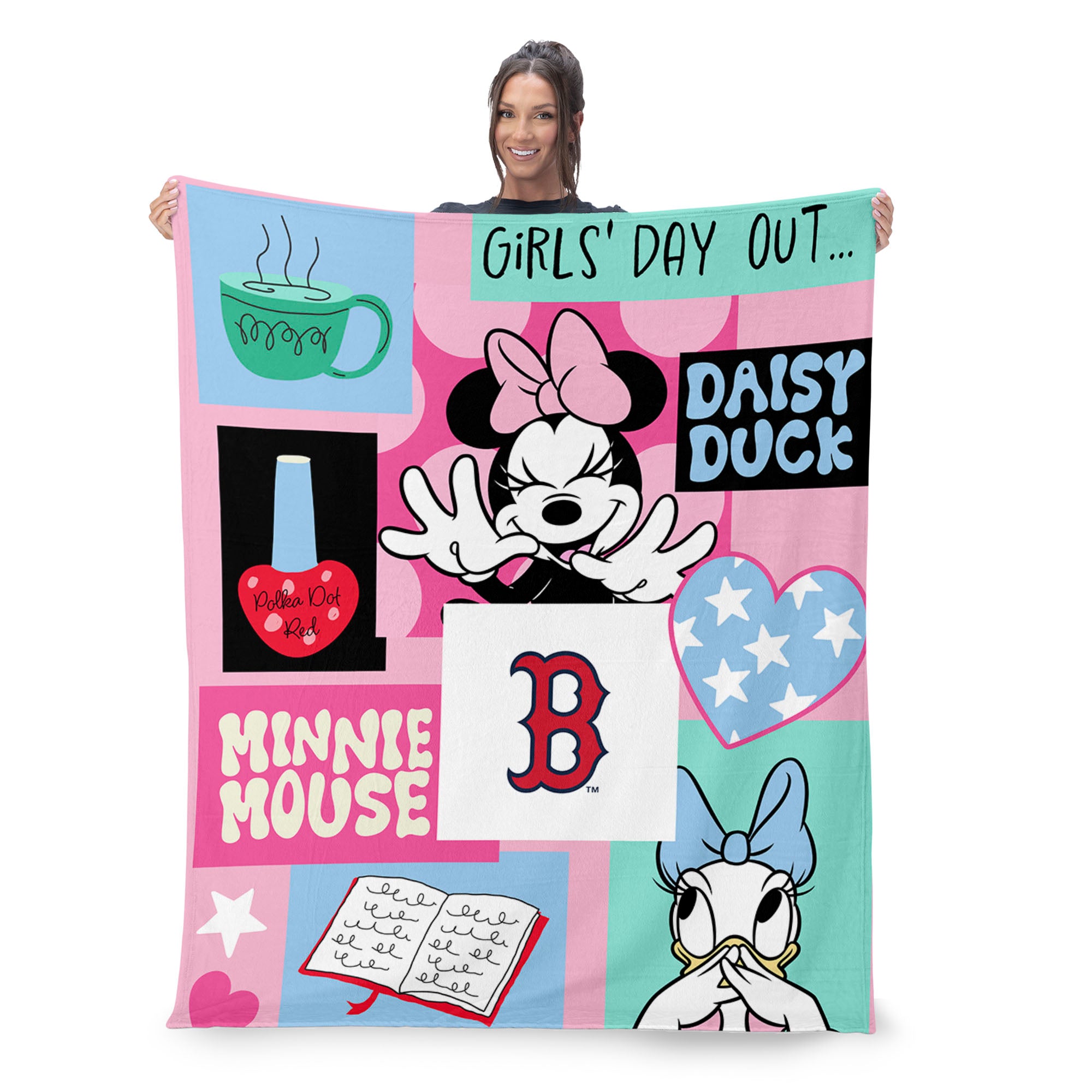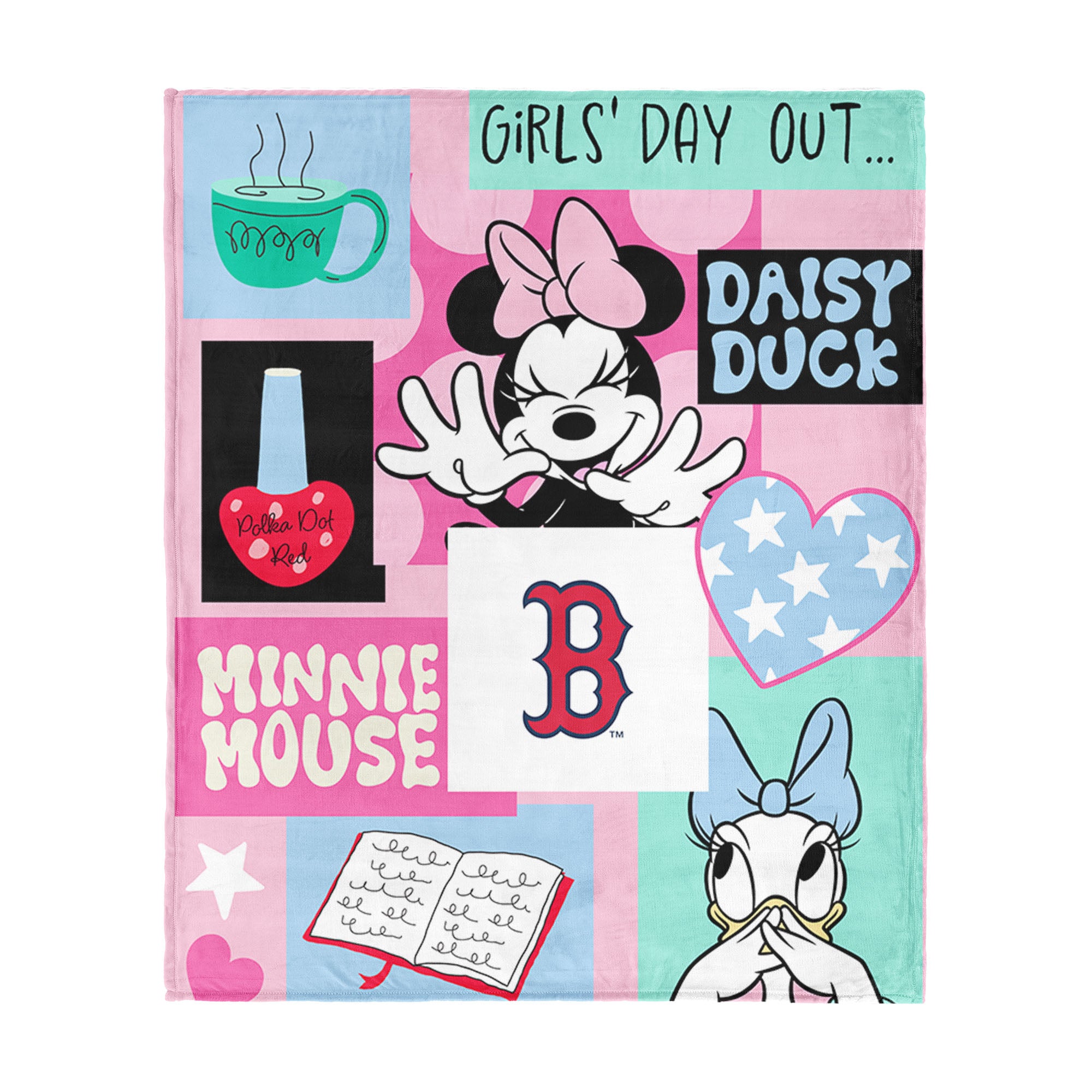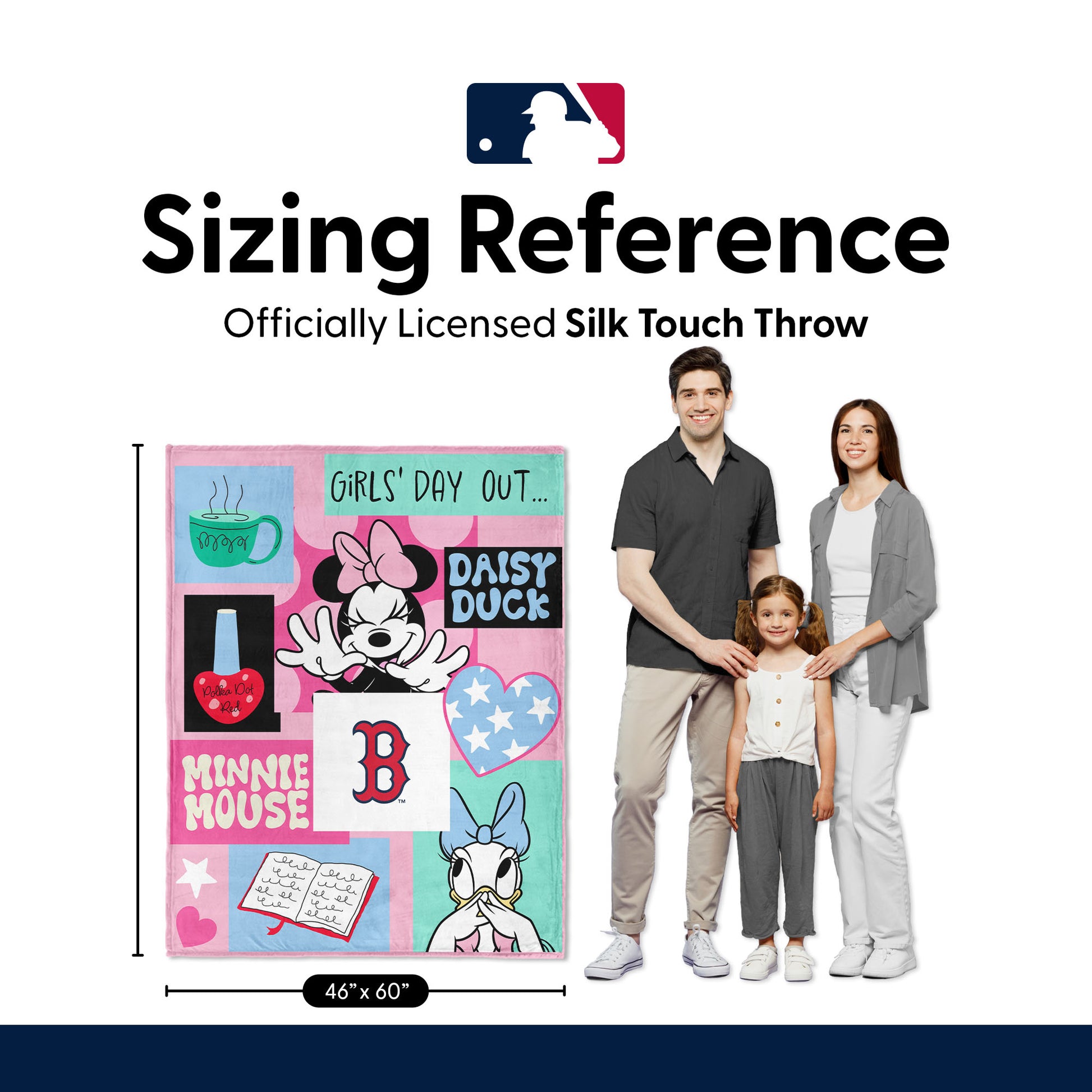 Add a touch of fun, color, and cozy comfort to any space with the Minnie Mouse Checker Floral Silk Touch Throw Blanket. The playful collage-style design featuring Minnie Mouse, Daisy Duck, and your favorite sport team's logo brings bright personality and charm to bedrooms, and playrooms. Crafted from ultra-soft silk touch fabric, this throw blanket offers a smooth and cozy feel that’s perfect for snuggling on the couch, watching your favorite shows, or adding a stylish decorative accent to a bed or chair. The lightweight yet warm material makes it great for year-round comfort while showcasing cheerful graphic elements. Whether you're decorating or looking for a thoughtful gift, this blanket combines comfort, color, and classic Disney sweetness.