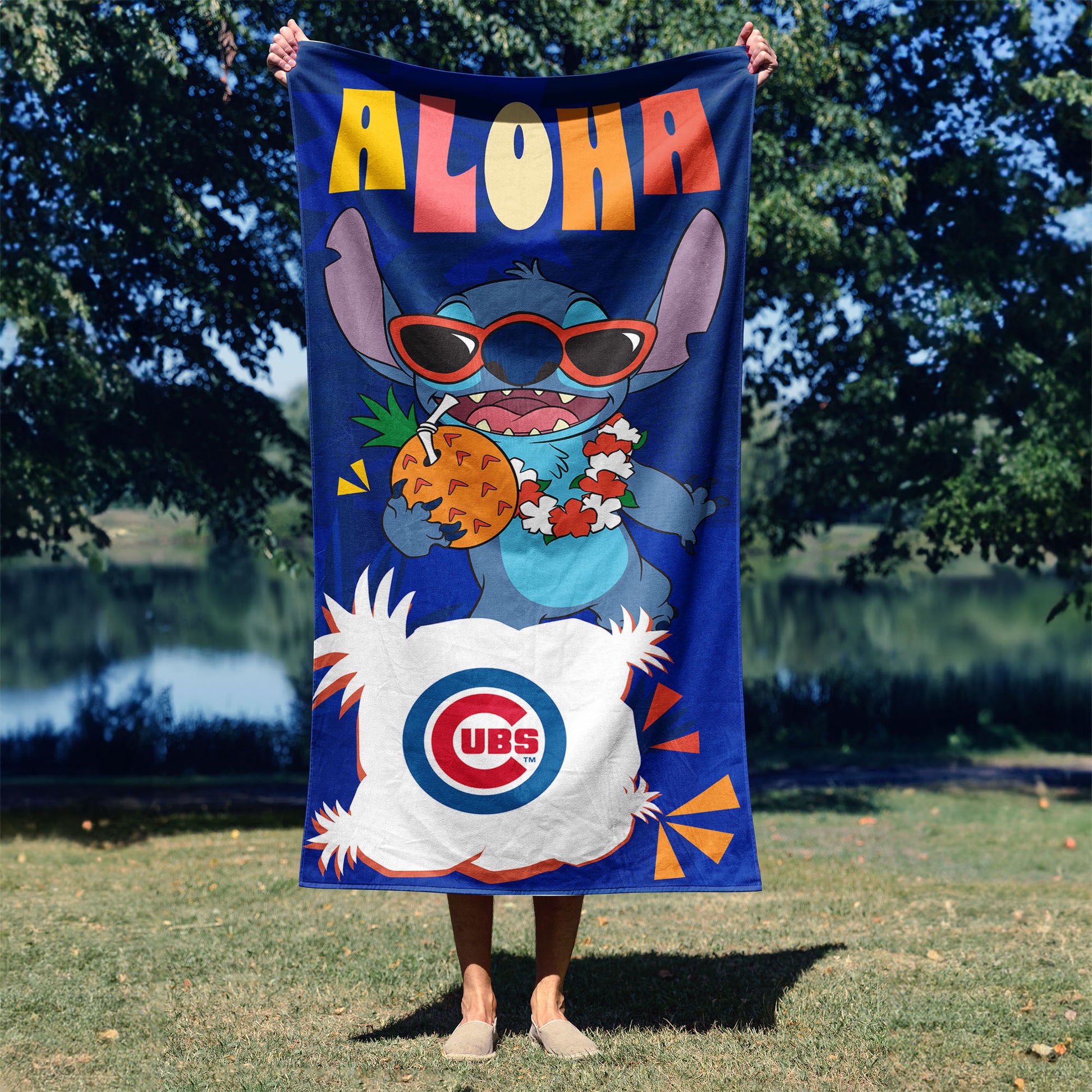 MLB Chicago Cubs Disney Lilo & Stitch Tropic Royal Microfiber Beach Towel 30x60 inches