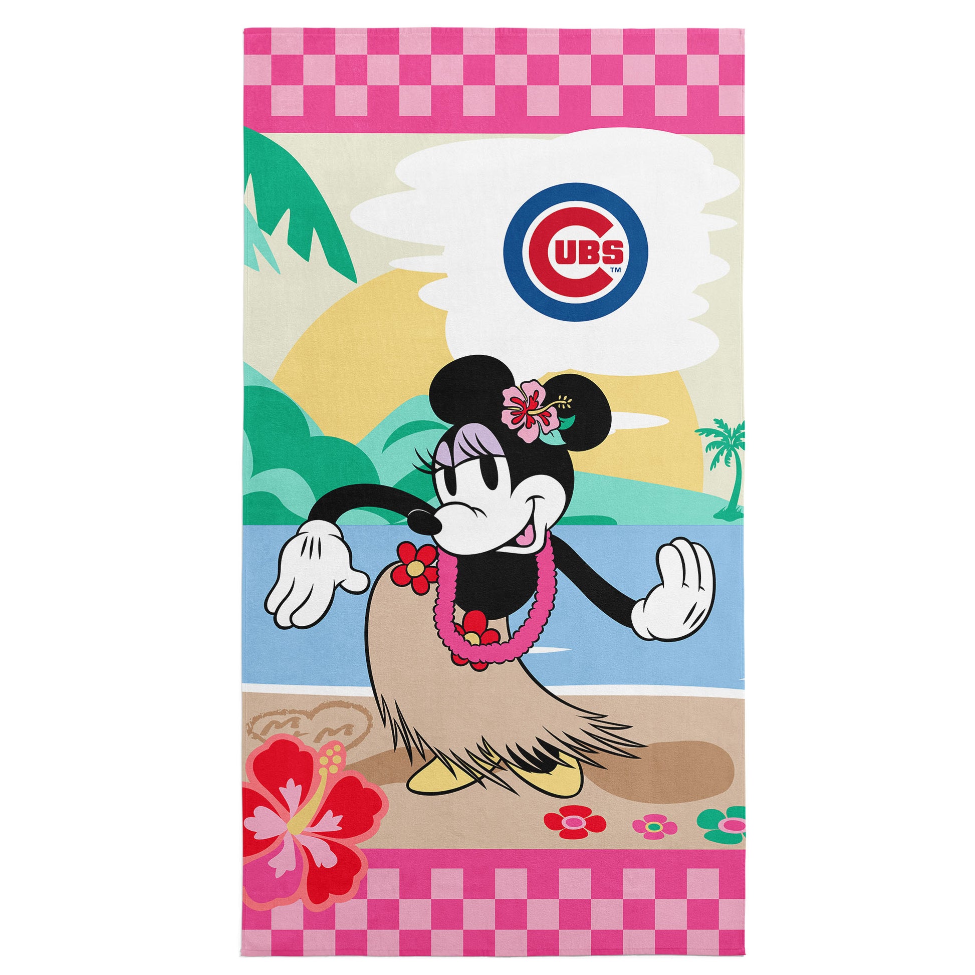 MLB Chicago Cubs Disney Minnie Mouse Beachy Check Pink Microfiber Beach Towel 30x60 inches