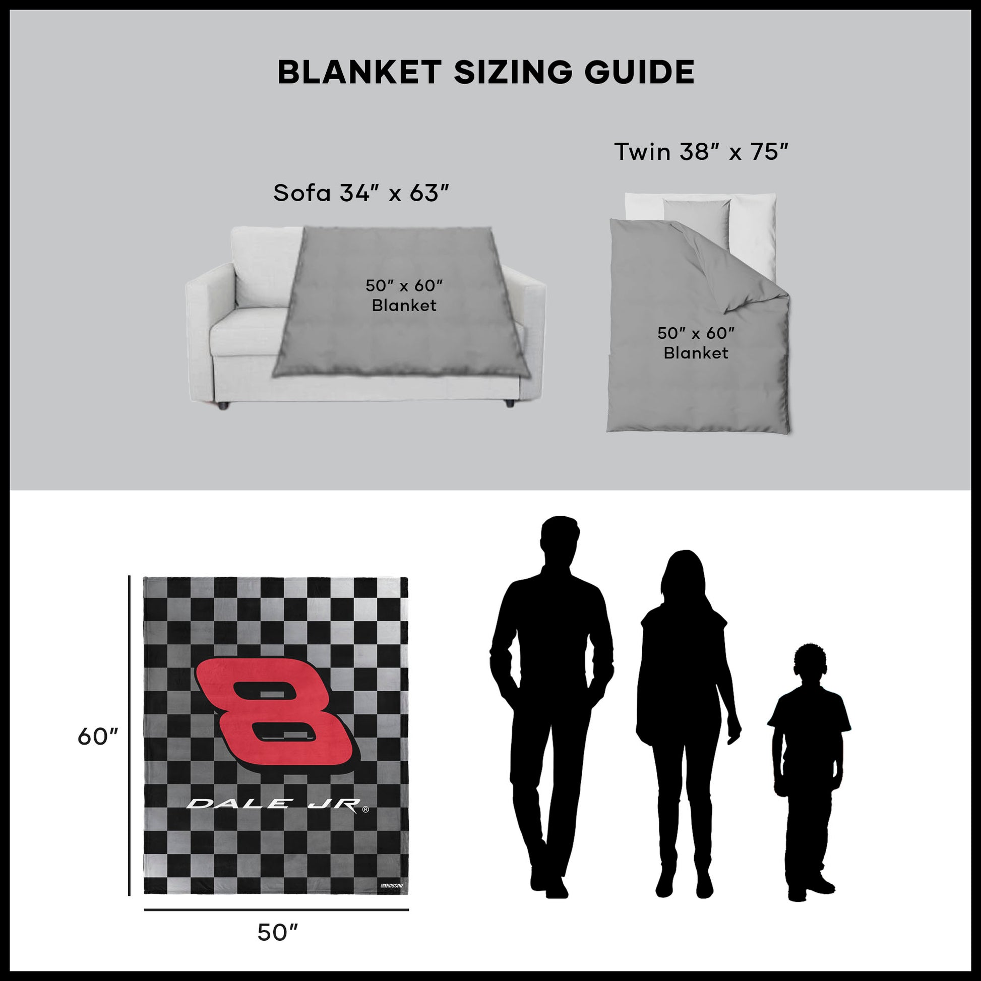 Race-day comfort takes the lead with the NASCAR “Graded Checks” Silk Touch Throw Blanket, crafted from ultra-soft, velvety Silk Touch fabric that delivers cozy warmth with a smooth, lightweight feel. Featuring a bold graded check pattern inspired by the iconic checkered flag and a large driver number with name, this Officially Licensed throw brings unmistakable trackside style to any space while remaining perfect for lounging, relaxing, or displaying. Ideal for the couch, bed, or race-day watch parties, it adds instant motorsports energy to your home décor. A standout gift for NASCAR fans of all ages, this throw blanket blends comfort, style, and racing pride into one versatile fan favorite.