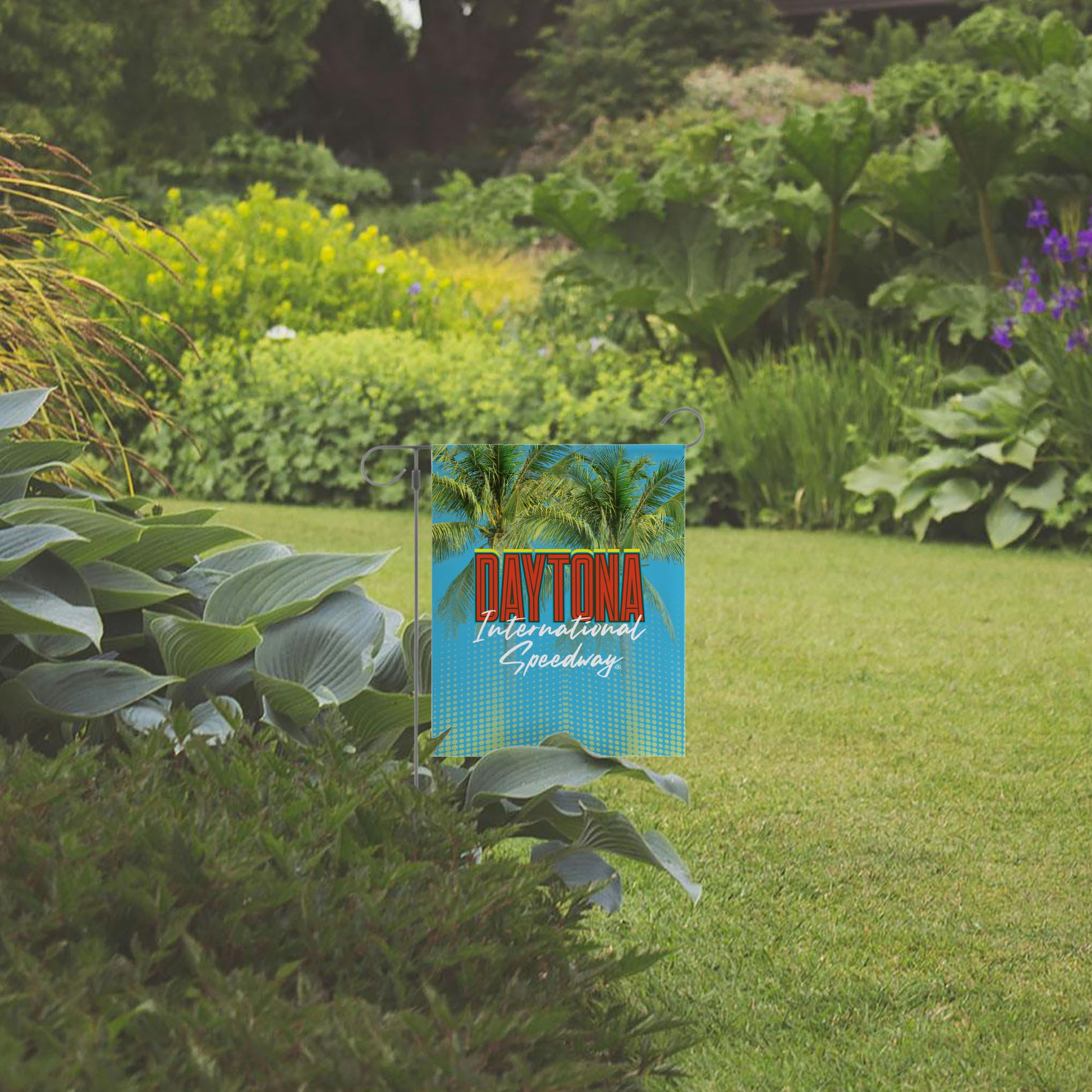 Put your race-day pride on full display with the NASCAR "Track Feature" Garden Flag. Designed to stand out in any outdoor space, this flag captures the vibrant energy of Daytona International Speedway with a bold palm tree background and dynamic type that makes a statement from the curb to the backyard. Made with durable, weather-resistant fabric, it's built to last through the season and beyond. Whether you're decorating for race weekend or gifting a fellow fan, this officially licensed flag is the perfect way to wave your love for the track.