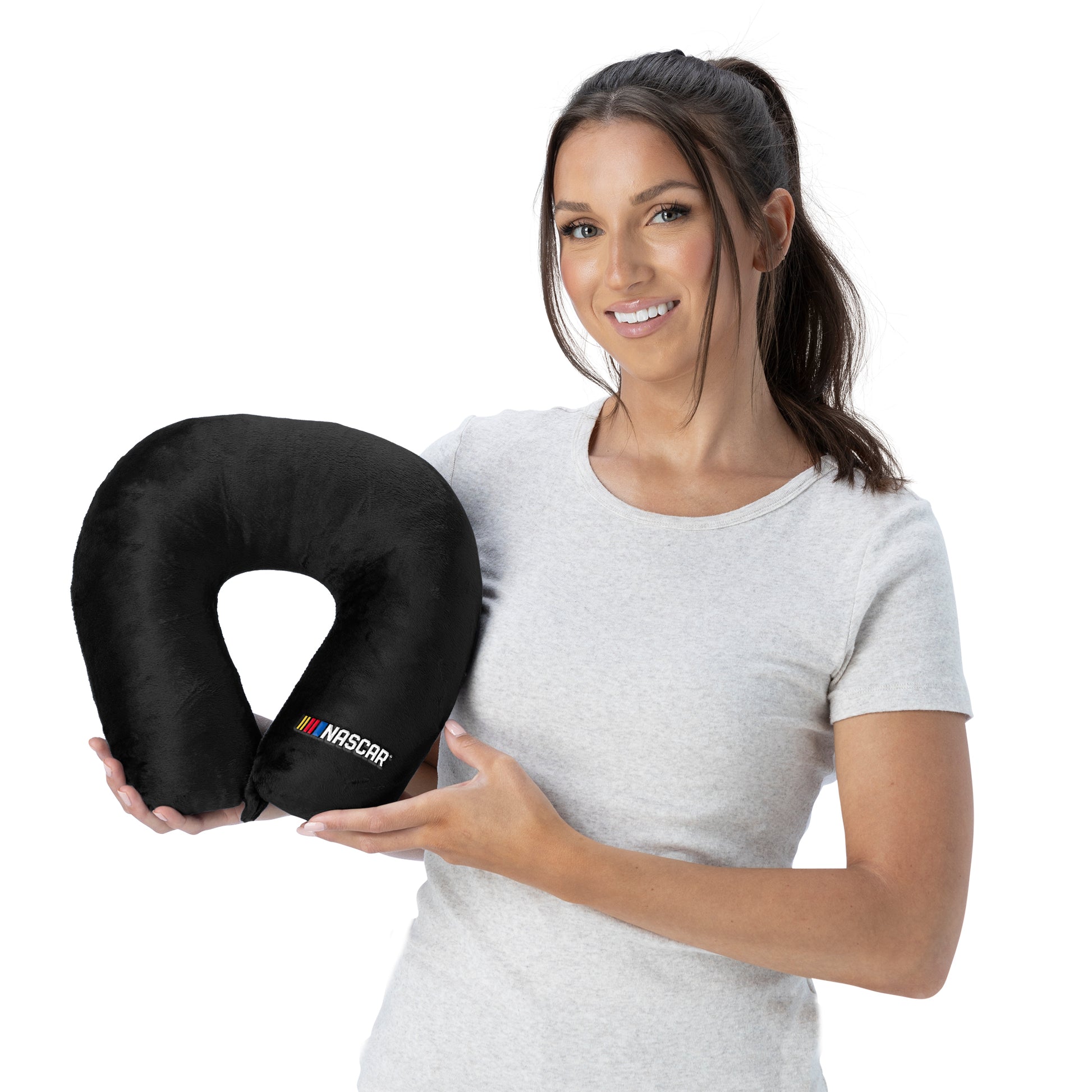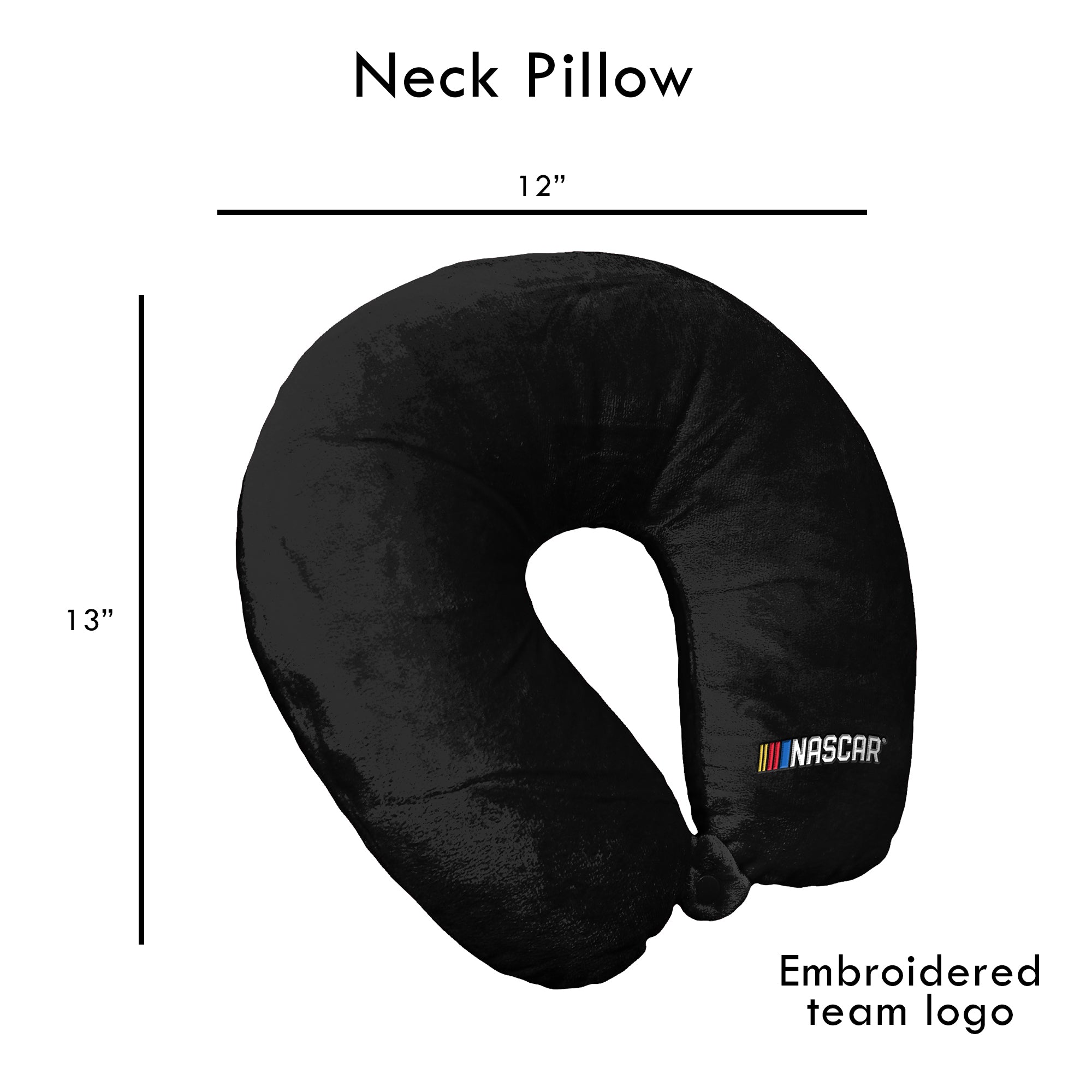 Cushioned travel comfort hits the fast lane with the NASCAR “Logo” Neck Pillow, designed to support your neck whether you're on the road, in the air, or relaxing at home. Wrapped in ultra-soft black fabric and shaped to cradle you with plush, ergonomic cushioning, it features the bold NASCAR logo in vibrant red, yellow, blue, and black for a clean, sporty look. Lightweight, supportive, and Officially Licensed, it keeps you comfortable no matter the distance. A perfect gift for fans who never miss a race—and never pass up a good nap—this neck pillow brings NASCAR pride to every journey. Relaxation and racing spirit have never paired so well.