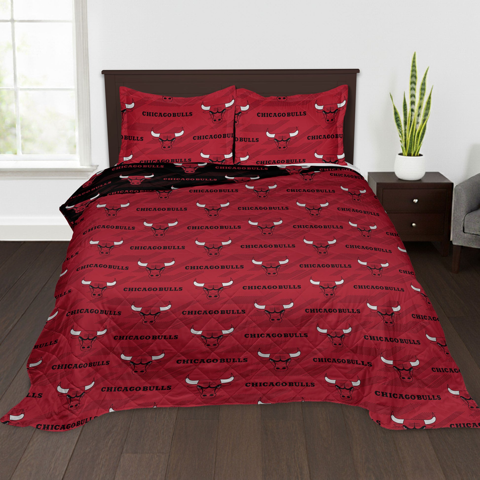 NBA Chicago Bulls Motion Vector Quilted Throw Blanket and Sham Set 90x90 inches