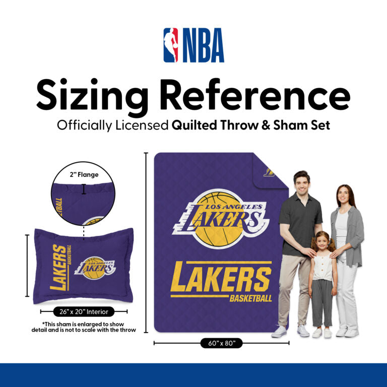 • OFFICIALLY LICENSED NBA DESIGN: Features authentic team graphics and colors that celebrate your favorite basketball franchise in bold, high-quality detail. COMPLETE 2-PIECE SET: Includes one 60” x 80” quilted throw and one 26” x 20” pillow sham with a 2” flange, giving your space a polished, fan-ready look. GREAT FOR BEDROOMS & FAN SPACES: A must-have for basketball fans of all ages — ideal for dorms, game rooms, guest beds, or as a standout gift for NBA superfan.