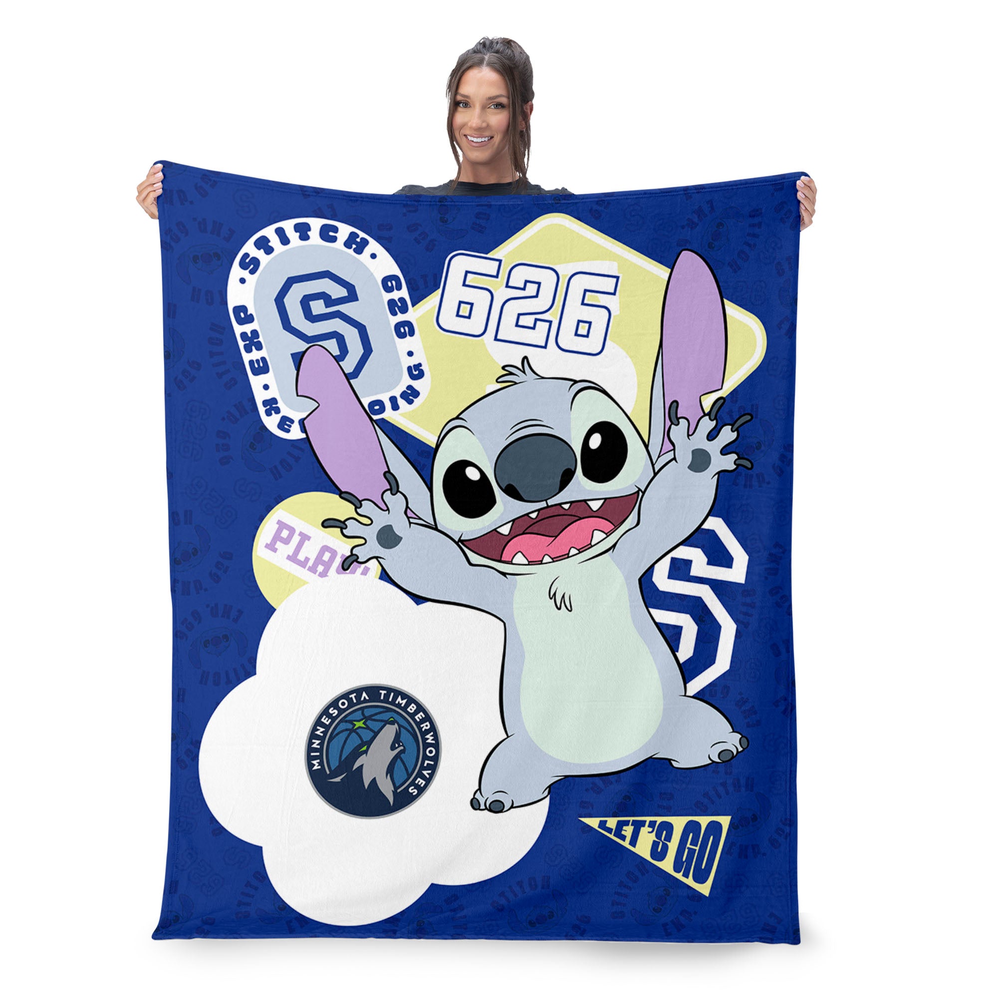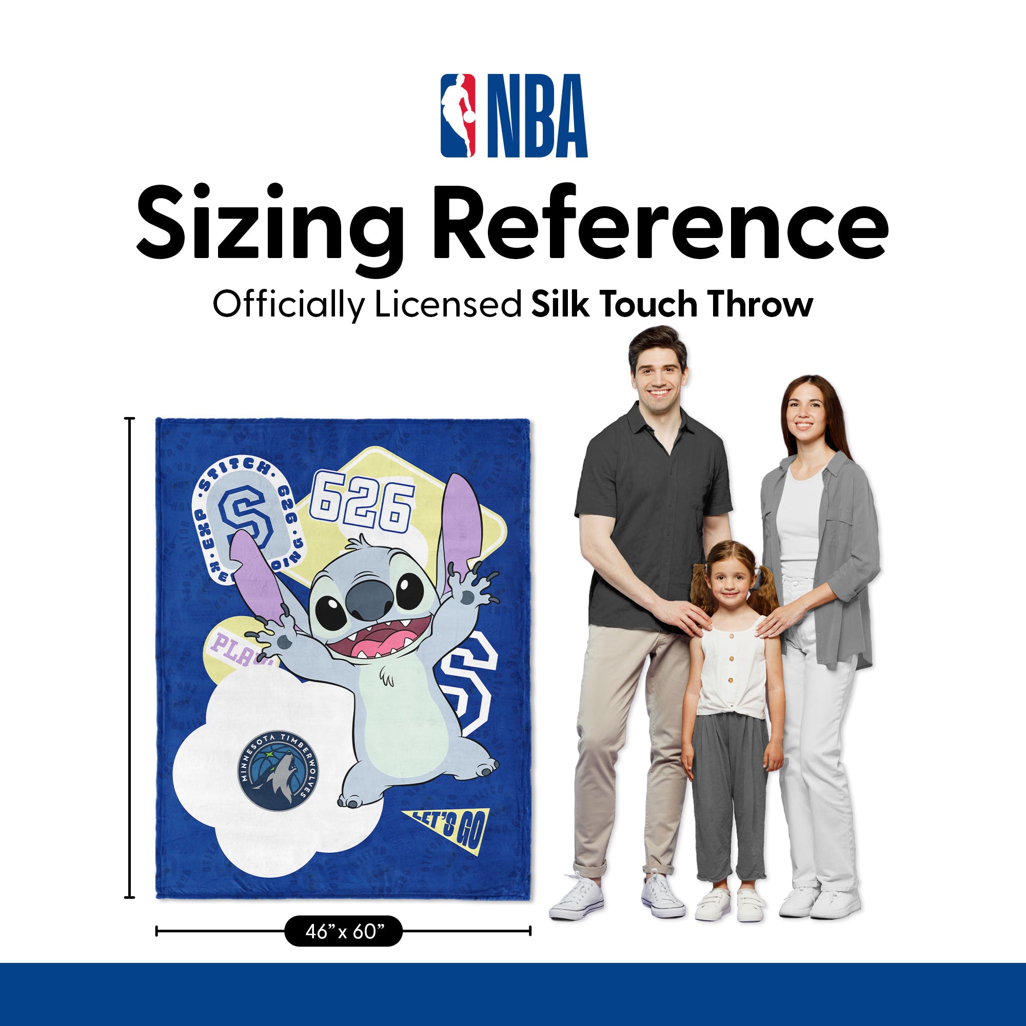 NBA Minnesota Timberwolves Disney Lilo & Stitch Stickers Royal Silk Touch Throw Blanket 46x60 inches