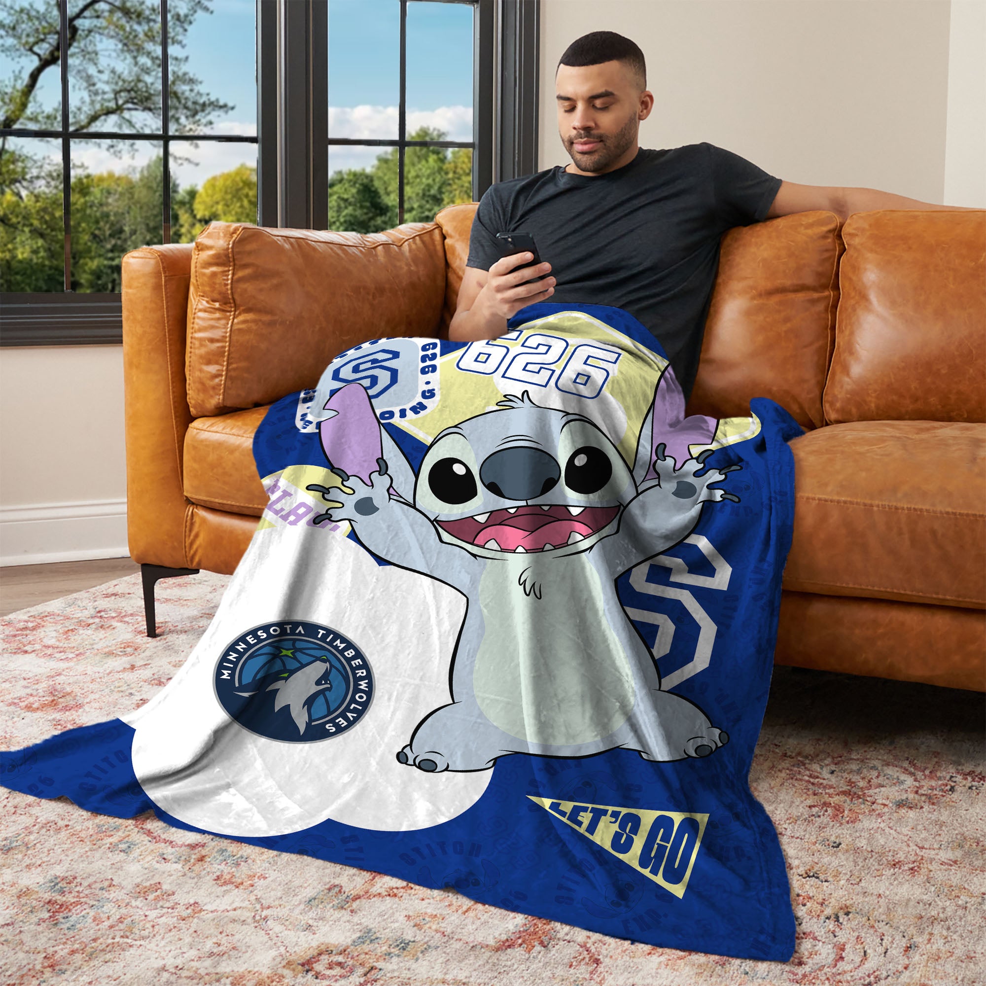 Add playful energy and cozy comfort to any space with the Lilo & Stitch Stickers Silk Touch Throw Blanket. Featuring a fun sticker-style design with Stitch surrounded by playful elements and your favorite sports team's logo. This blanket brings a cheerful and adventurous vibe to bedrooms, living rooms, or cozy movie nights. Made from ultra-soft silk touch fabric, this throw provides a smooth, comfortable feel that’s perfect for relaxing on the couch, snuggling up during story time, or adding a vibrant decorative accent to a bed or chair. The lightweight yet warm material makes it ideal for year-round comfort while showcasing the classic Lilo & Stitch fans know and love. Whether you're decorating a themed room or looking for a thoughtful gift, this blanket delivers both comfort and character-filled style.