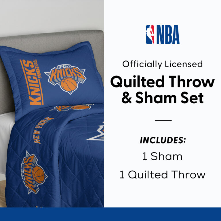 NBA New York Knicks Summarize Quilted Throw Blanket and Sham Set 60×80 inches