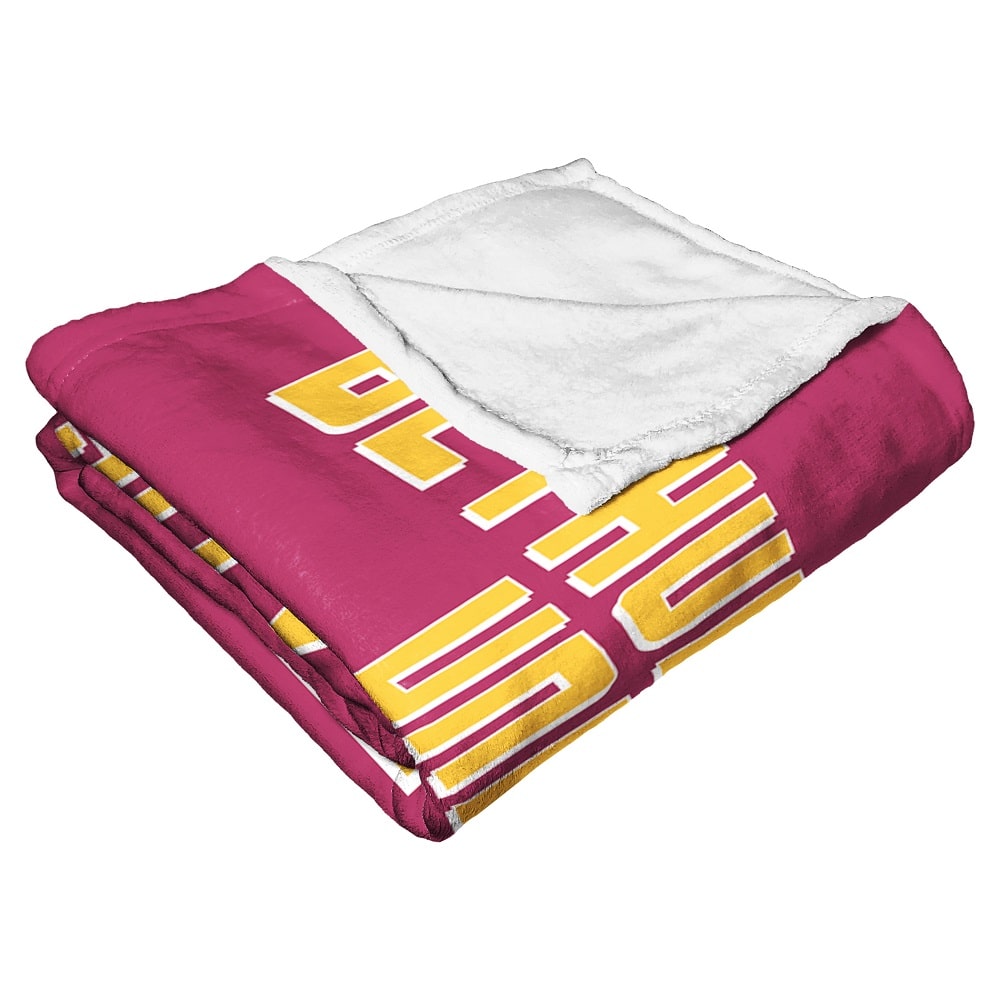 Proudly show off your alma mater or the school you love to root for with this Officially Licensed NCAA "Alumni" Silk Touch Throw Blanket by TheNorthwest. This cozy throw blanket is the perfect game day accessory. This 50"x 60" silky-soft throw blanket is perfect for keeping warm at the game, using on a picnic, or cuddling under on your couch. It boldly features a retro school logo in the center, surrounded by the team name, on a solid color background. This throw has a neutral color backside.