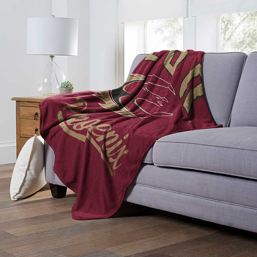 Proudly show off your alma mater or the school you love to root for with this Officially Licensed NCAA "Alumni" Silk Touch Throw Blanket by TheNorthwest. This cozy throw blanket is the perfect game day accessory. This 50"x 60" silky-soft throw blanket is perfect for keeping warm at the game, using on a picnic, or cuddling under on your couch. It boldly features a retro school logo in the center, surrounded by the team name, on a solid color background. This throw has a neutral color backside.