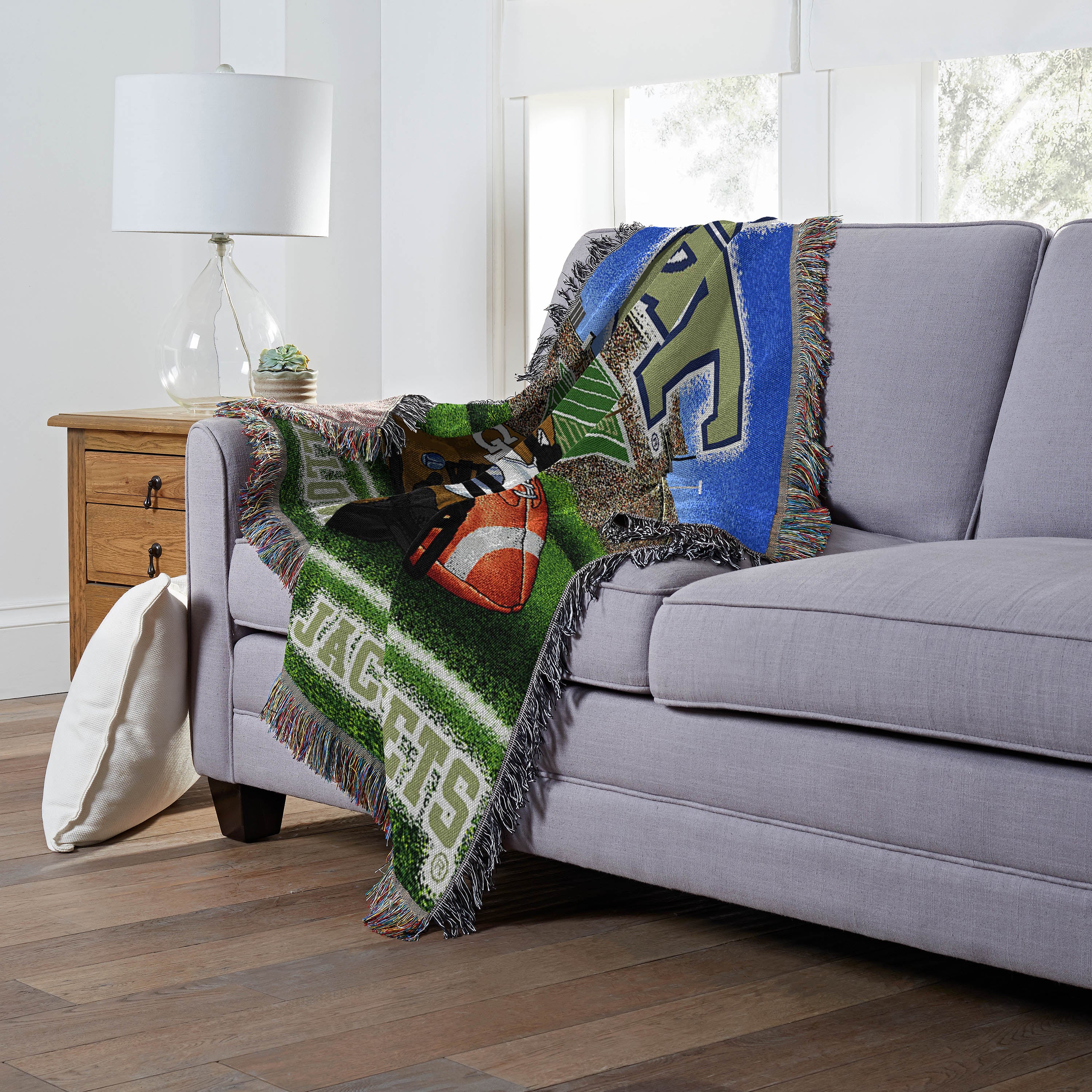 Show school spirit with an Officially Licensed NCAA "Home Field Advantage" Woven Tapestry Throw Blanket by TheNorthwest. Bring home this 48"x 60" woven tapestry featuring your favorite team's logo, graphics, and stadium in amazing details and colors. Use it as a room accent, bed covering, throw blanket, or display it as a wall-hanging. These MADE IN AMERICA tapestries have decorative fringes on all sides.