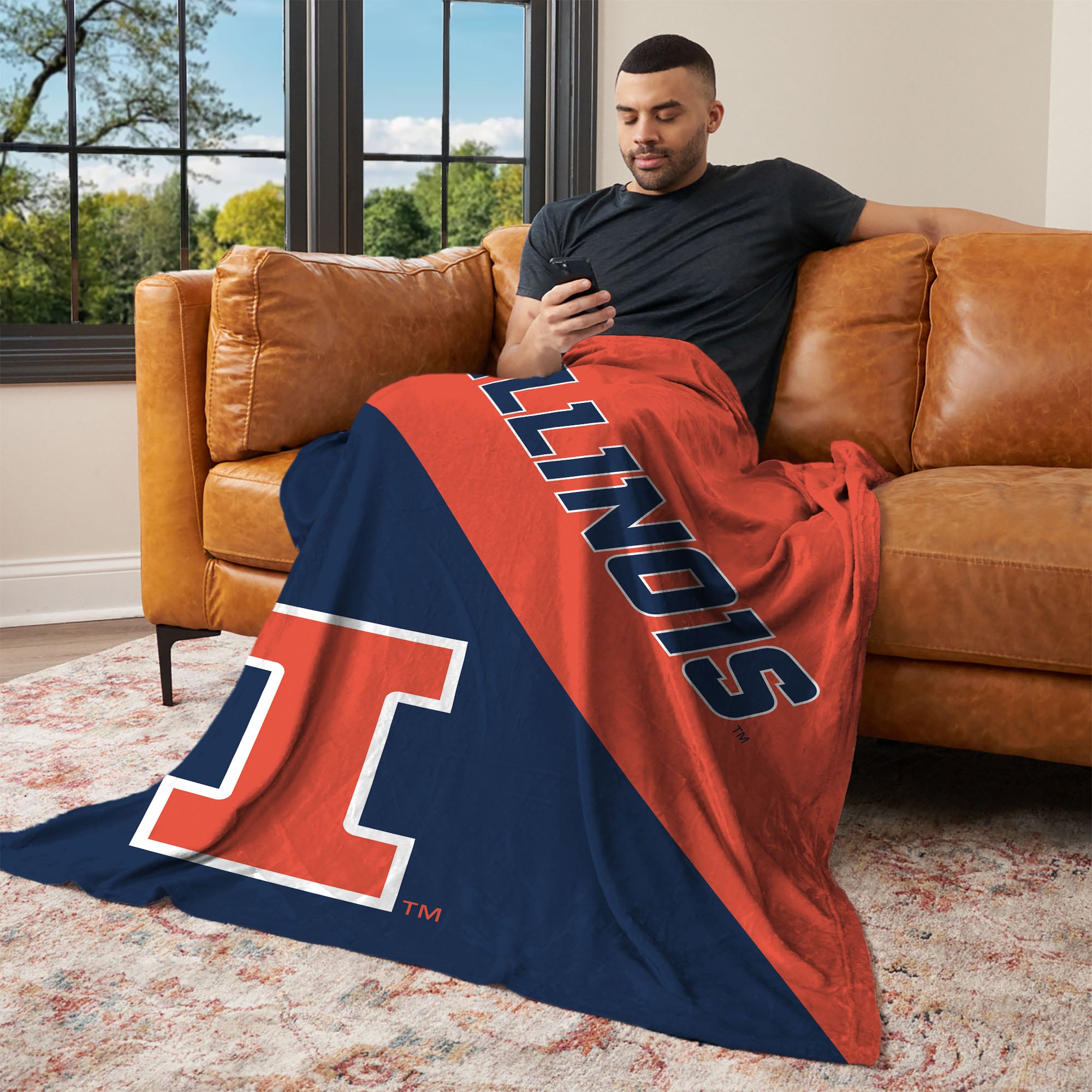 NCAA Illinois Fighting Illini Halftone Silk Touch Throw Blanket 46x60 inches