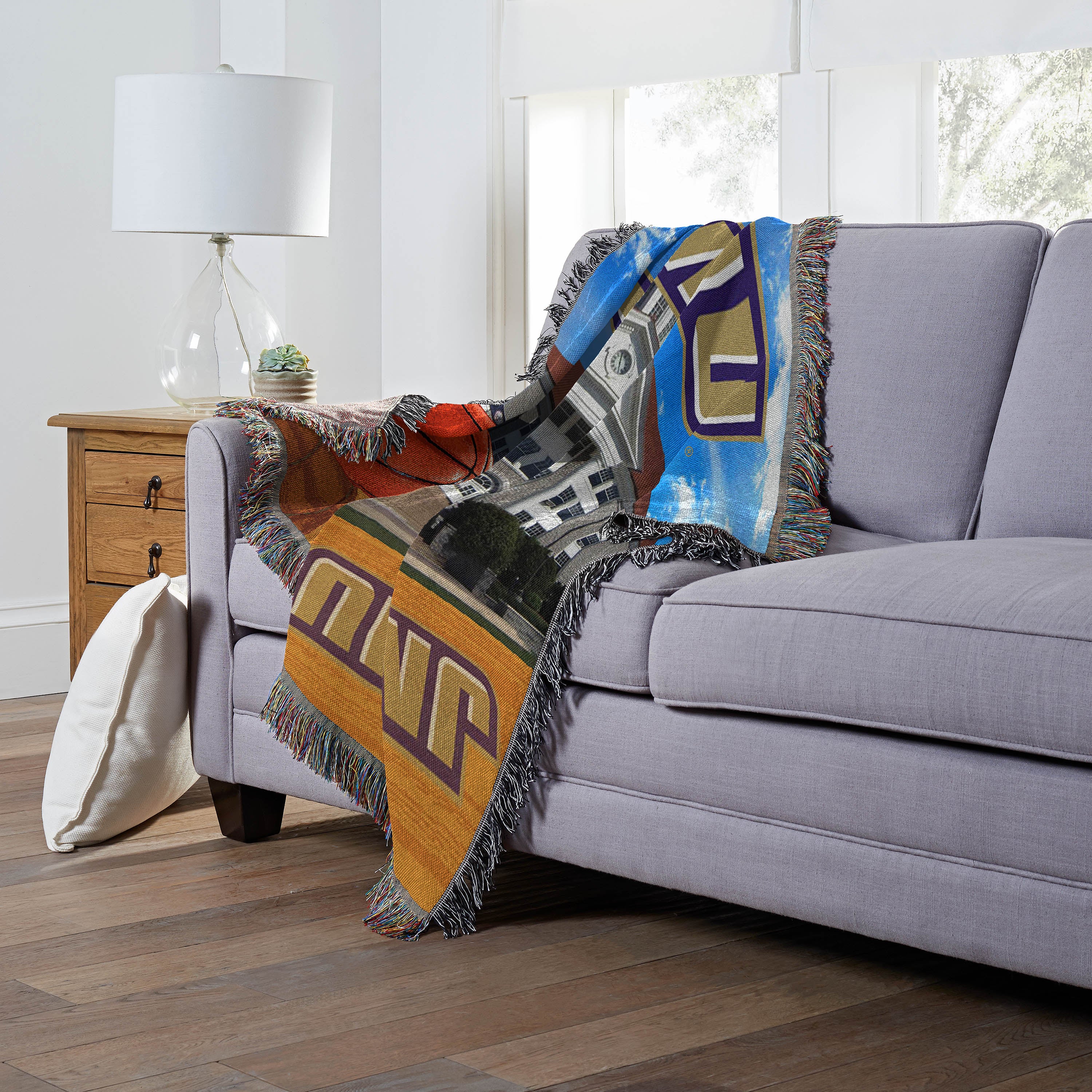 Show school spirit with an Officially Licensed NCAA "Home Field Advantage" Woven Tapestry Throw Blanket by TheNorthwest. Bring home this 48"x 60" woven tapestry featuring your favorite team's logo, graphics, and stadium in amazing details and colors. Use it as a room accent, bed covering, throw blanket, or display it as a wall-hanging. These MADE IN AMERICA tapestries have decorative fringes on all sides.