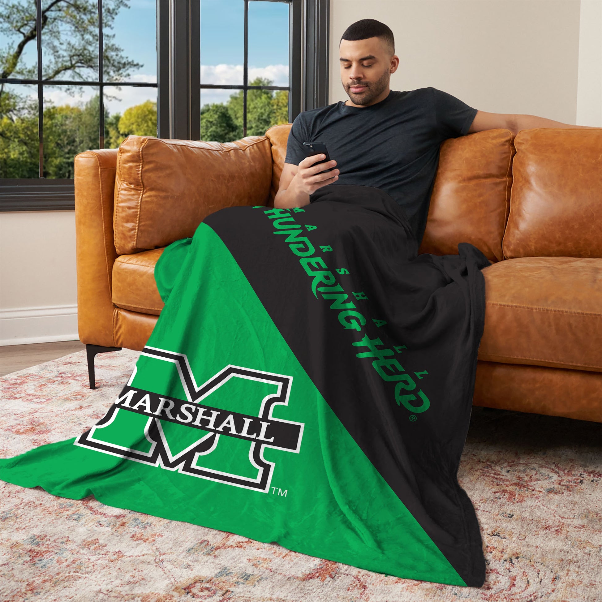 NCAA Marshall Thundering Herd Halftone Silk Touch Throw Blanket 46x60 inches