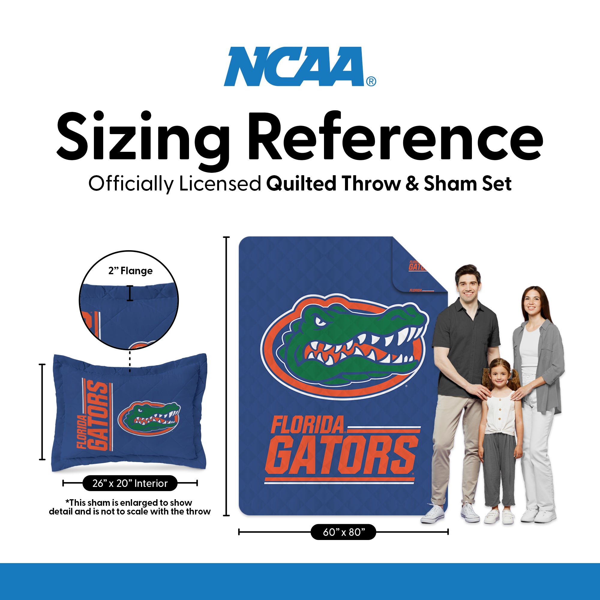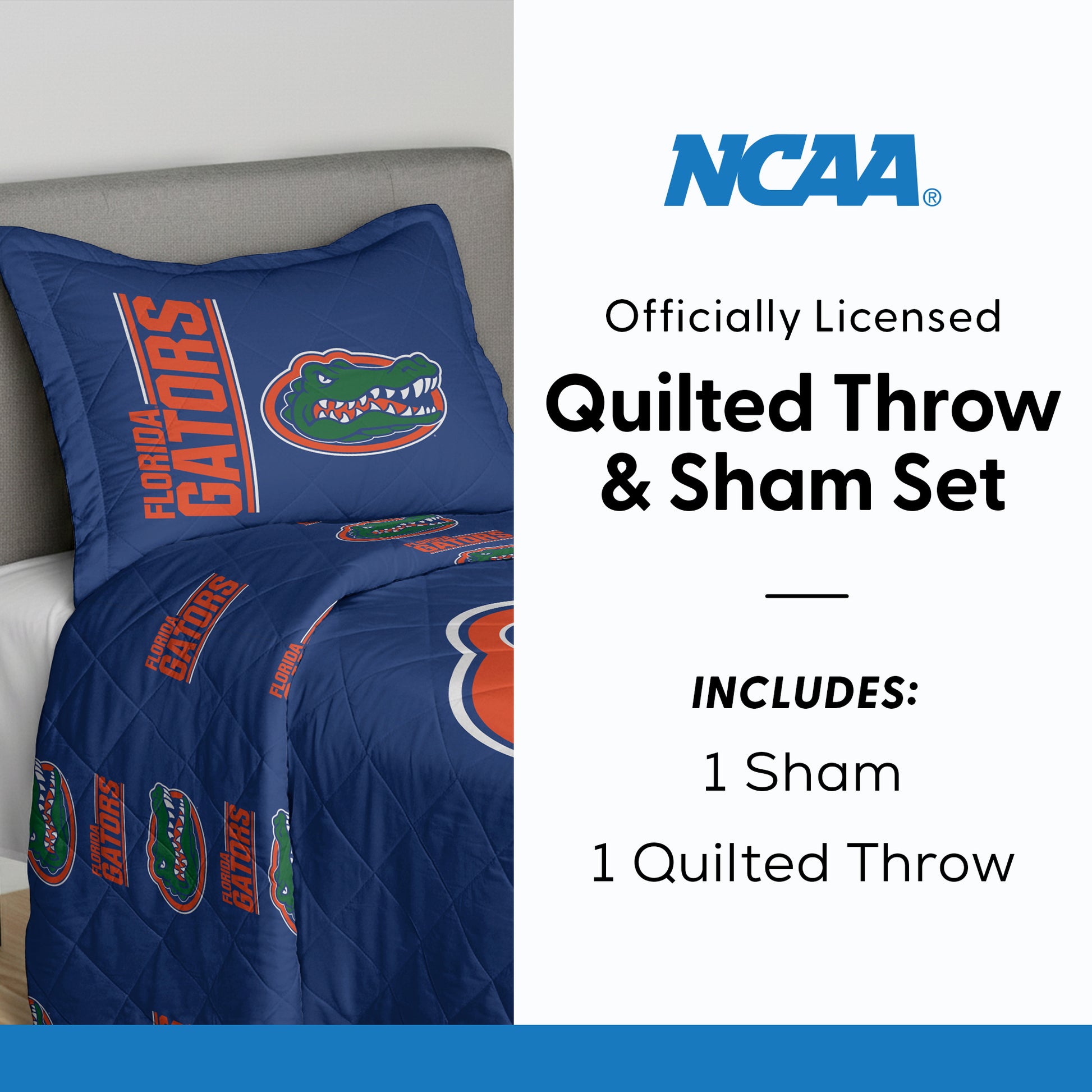 NCAA University of Florida Gators Summarize Quilted Throw Blanket and Sham Set 60×90 inches