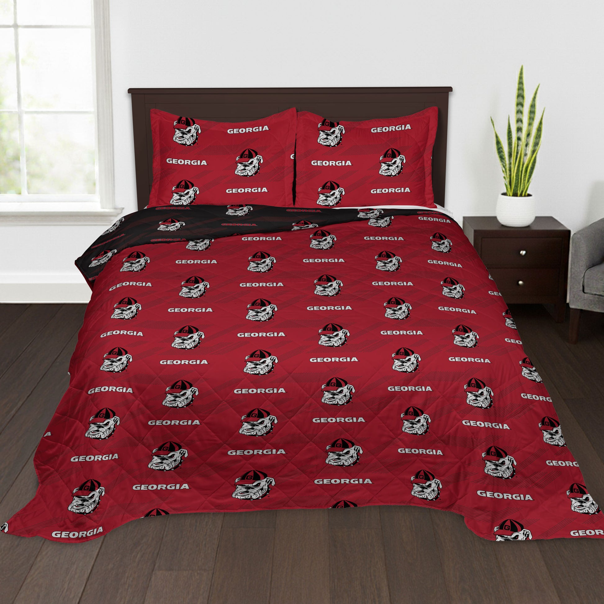 NCAA University of Georgia Bulldogs Motion Vector Quilted Throw Blanket and Sham Set 90x90 inches