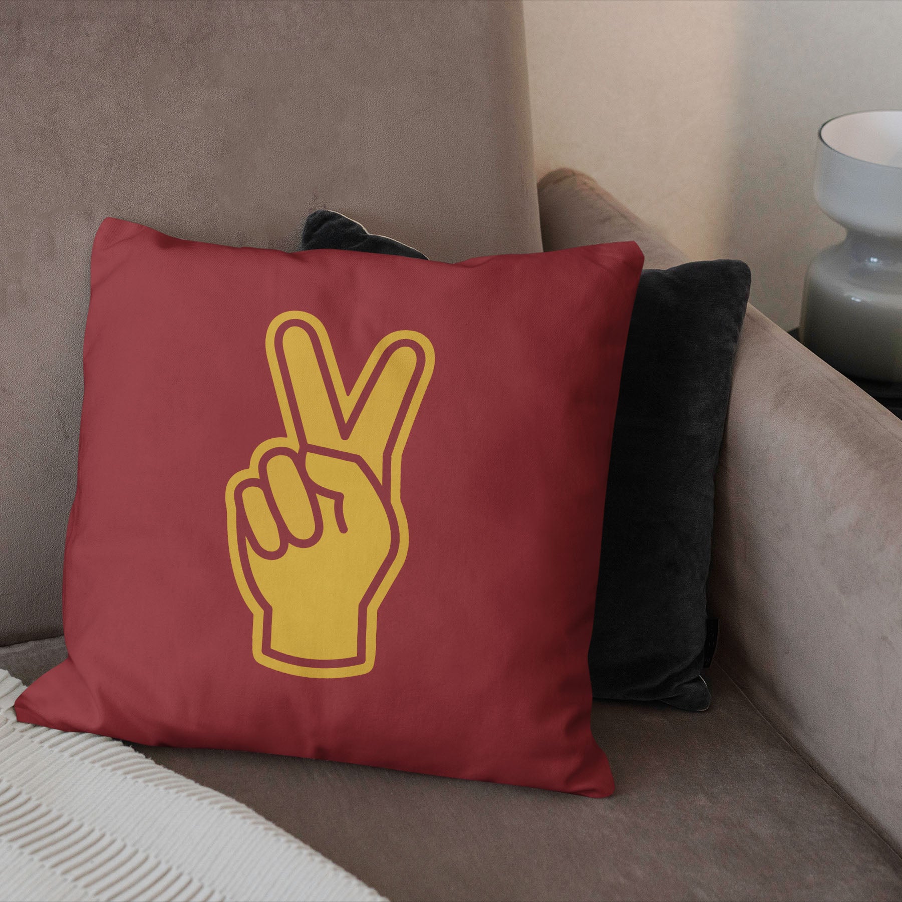 Show your Trojan pride with our USC Horse Throw Pillow! One side boasts the iconic USC Trojan horse mascot, while the other features a hand peace gesture. A symbol of your unwavering support for the Trojans. Whether you’re relaxing at home or adding a touch of school spirit to your space, this pillow is a must-have for every true USC fan.