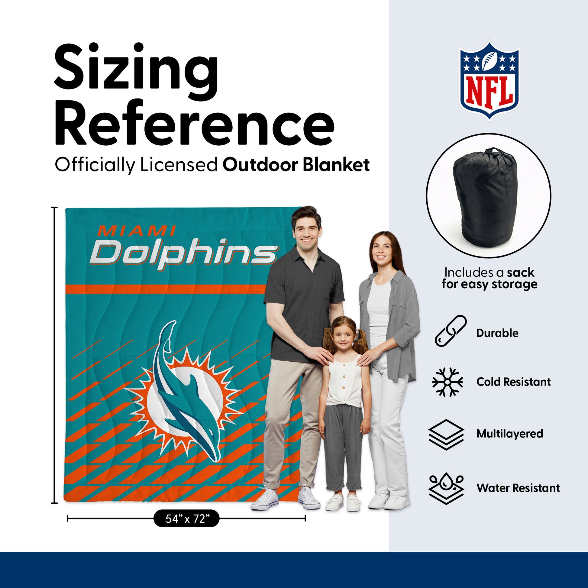 NFL Miami Dolphins Granular Taffeta Outdoor Blanket, 72x54 inches