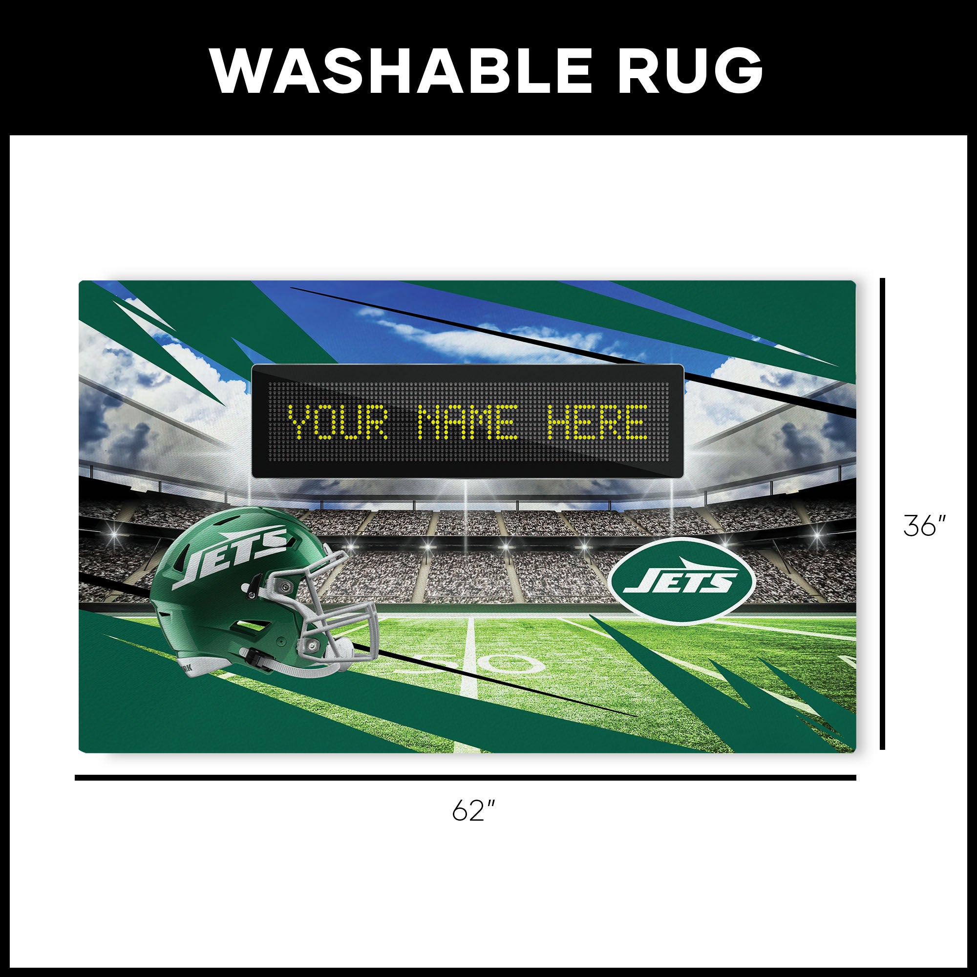 NFL New York Jets Scoreboard Personalized Washable Rug 36x62 Inches