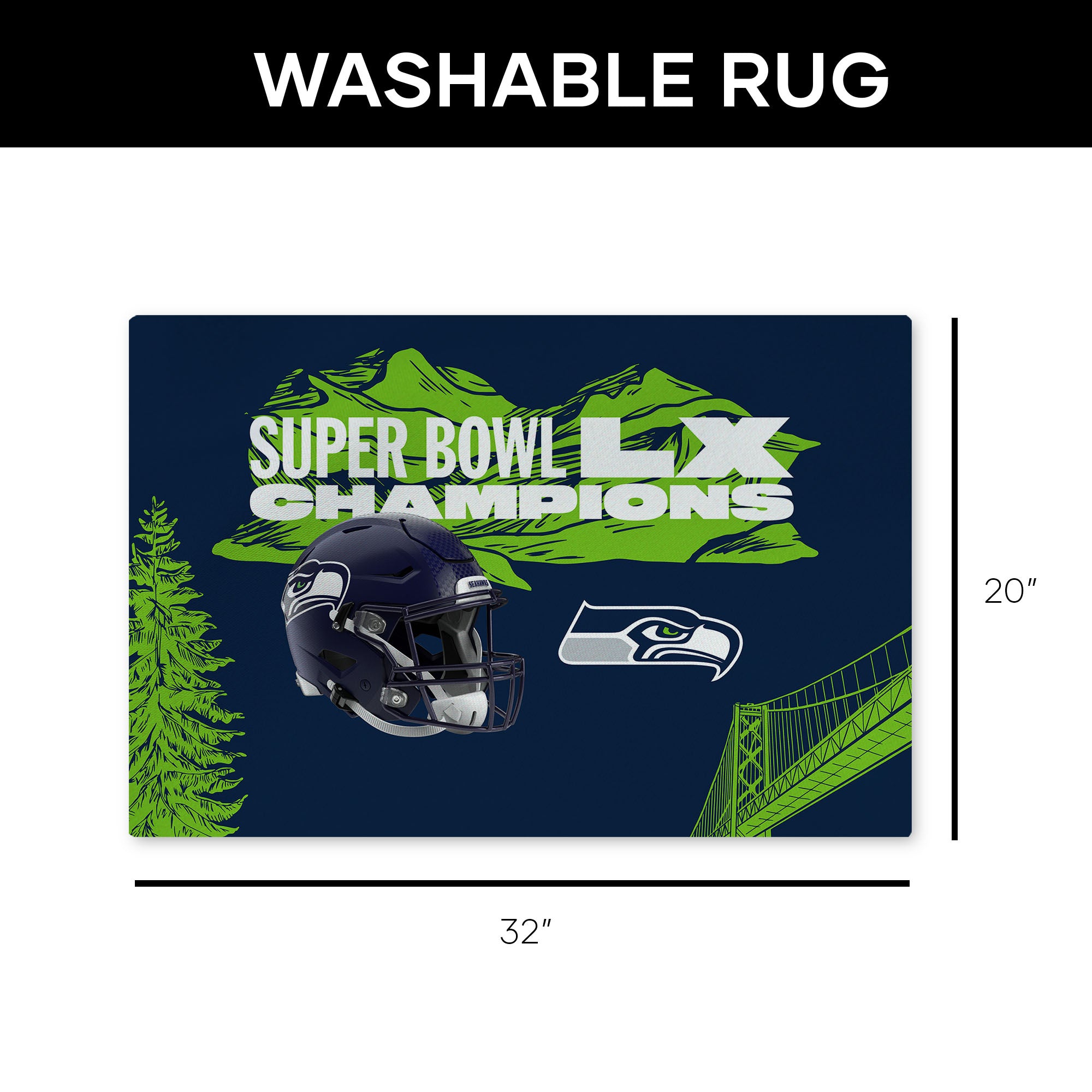 NFL Super Bowl 2026 Seattle Seahawks Champs Baker Washable Rug 20x32 inches