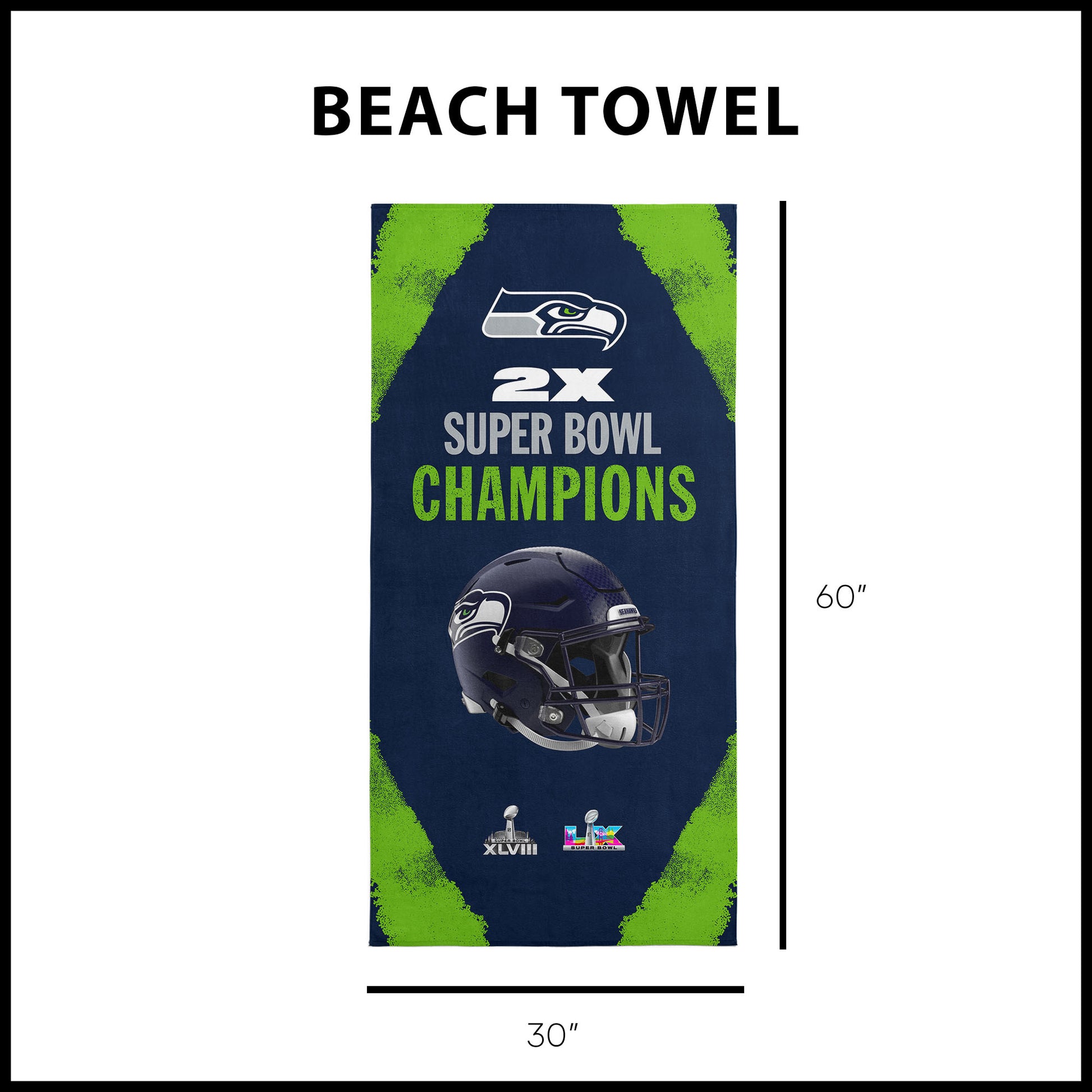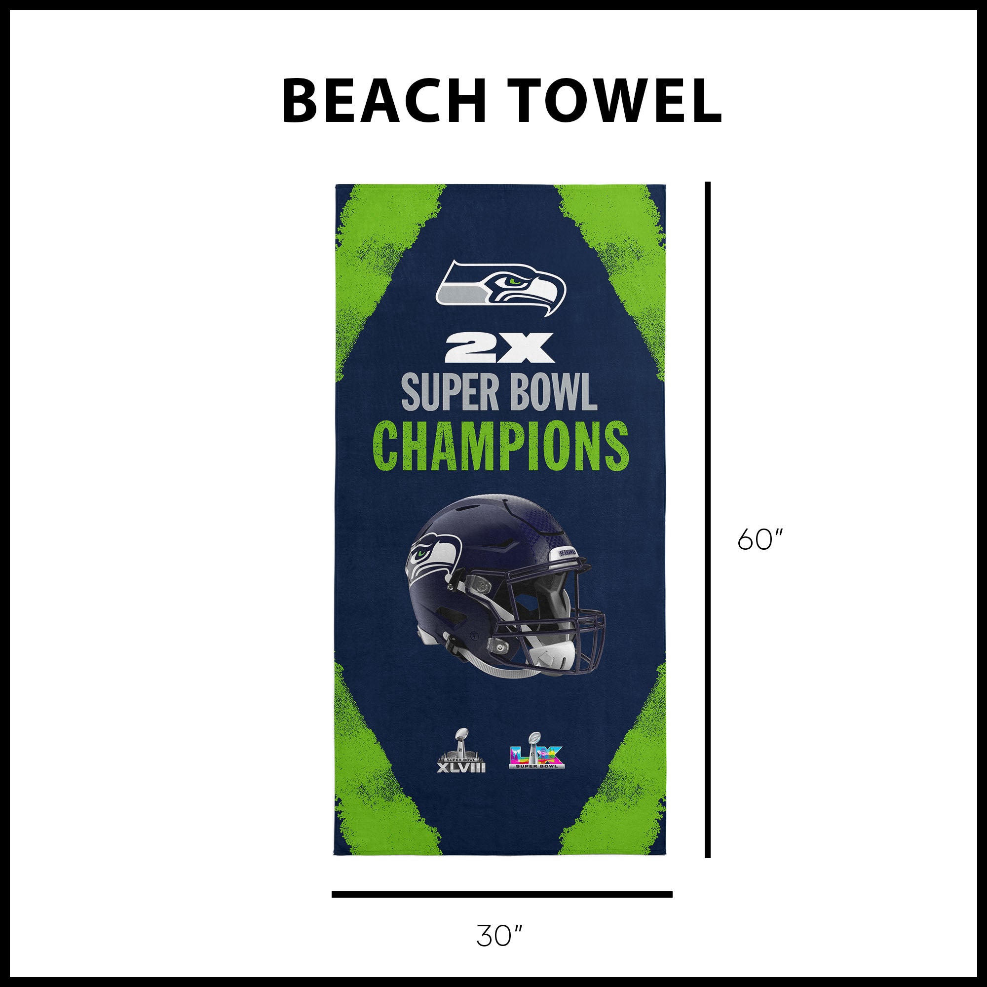 NFL Super Bowl 2026 Seattle Seahawks Multi Champs Coastal Beach Towel 30x60 inches