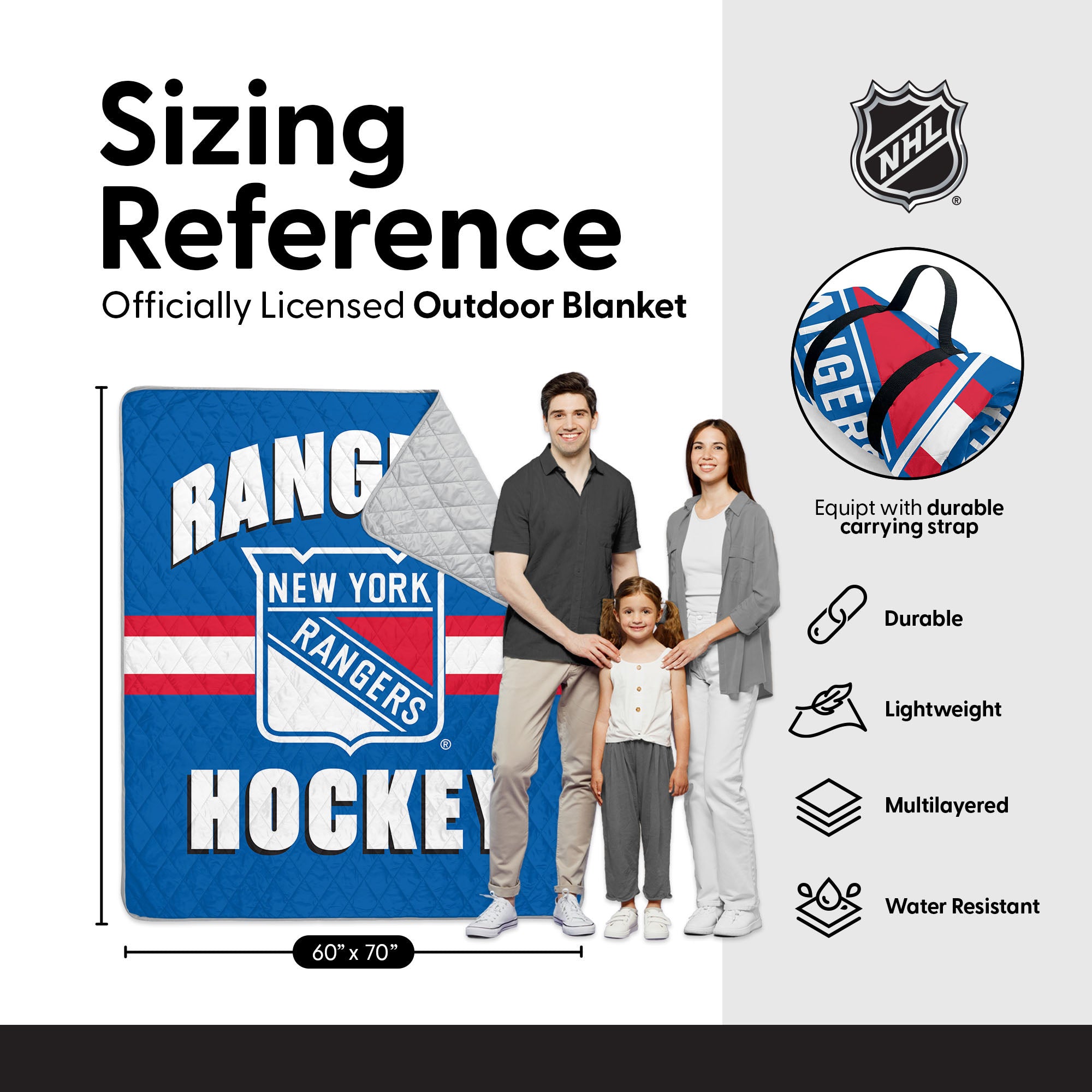 Bring the chill in the best way possible with the NHL Iced Out Taffeta Outdoor Blanket, packed with bold team colors, sharp striping, and that unmistakable hockey swagger fans can’t get enough of. Features include a smooth taffeta top showcasing your team’s emblem, durable construction ready for outdoor action, and a soft, insulating underside that keeps you warm whether you’re tailgating, rink-side, picnicking, or kicking back for a cozy night in. Officially Licensed and perfect as a fan-favorite gift, this easy-fold blanket delivers comfort, style, and team pride all in one—making it the go-to accessory for die-hard supporters who love to rep their colors wherever they roam.