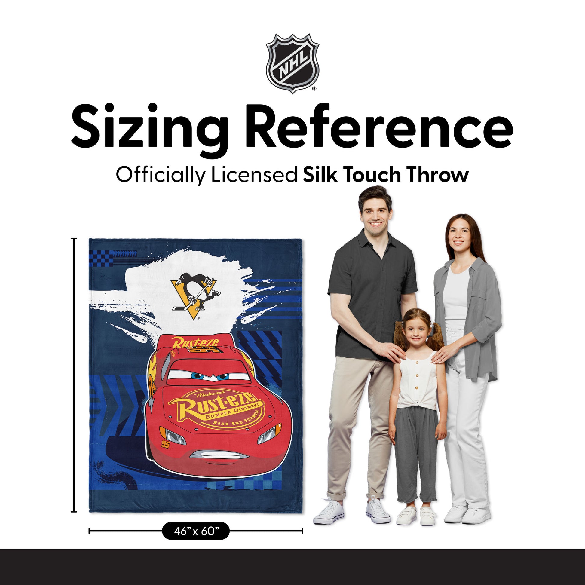 NHL Pittsburgh Penguins Disney Cars Lap Time Navy Silk Touch Throw Blanket 46x60 inches