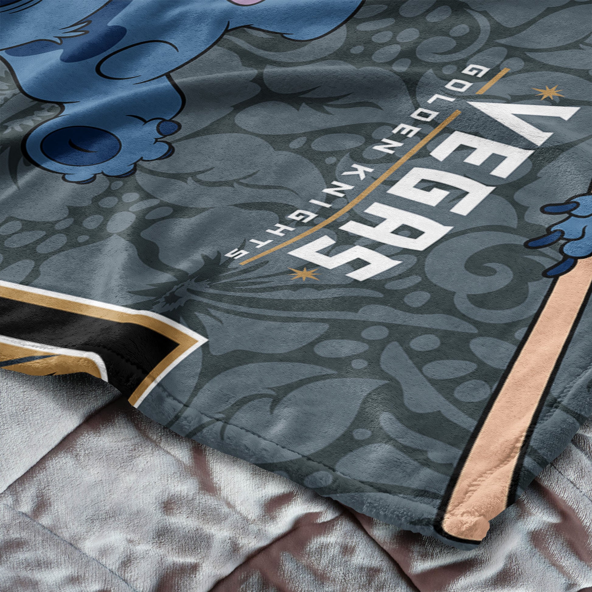 • Features Stitch as a plush character pillow, ultra-huggable and full of personality—perfect for travel, naps, or display. The matching throw blanket delivers cozy, all-season comfort with playful hockey-themed artwork set against a dynamic floral backdrop.