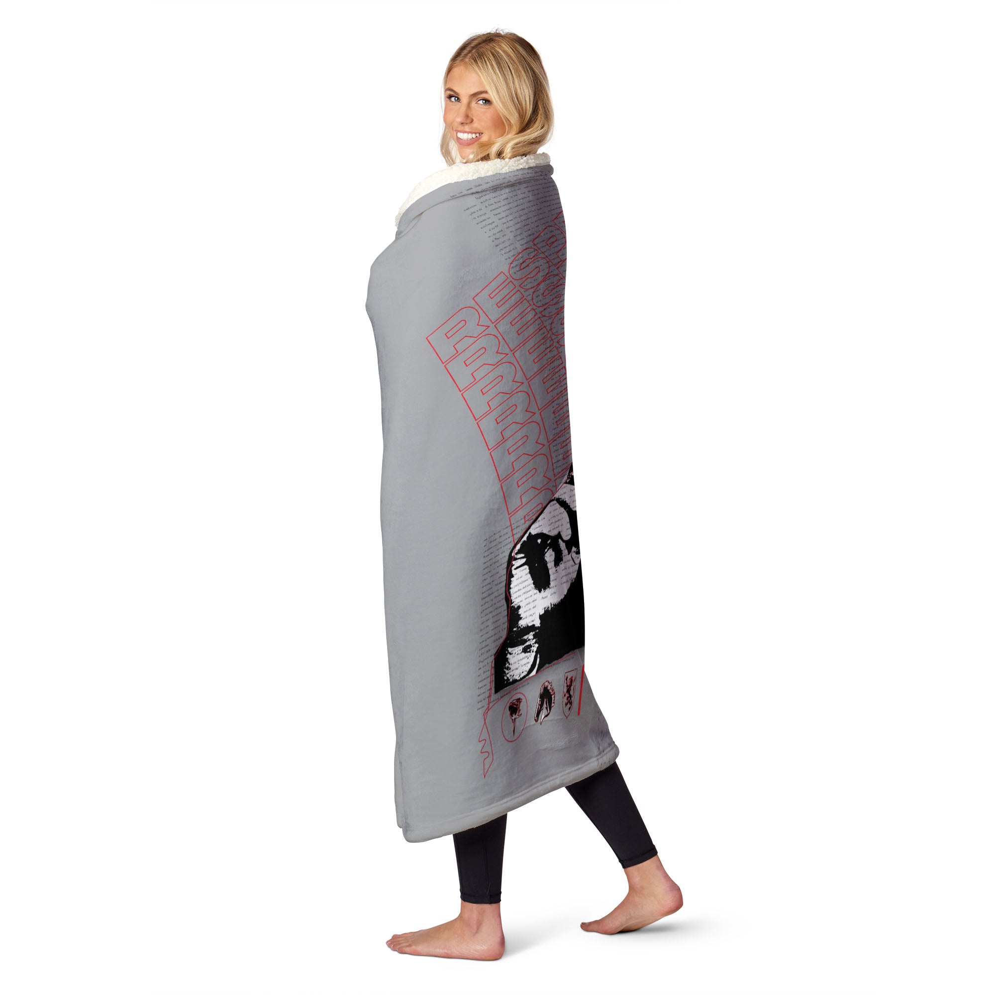 Embrace the legacy of a cinematic masterpiece with The Godfather "Respect The Don" Silk Touch Sherpa Throw. Showcasing a powerful black and white graphic image of Don Vito Corleone, this throw brings the iconic character into your home with unmatched style. The background, adorned with repeated lines of the word "Respect," emphasizes the core value that defines The Godfather's world. This throw isn't just about impressive visuals; it offers luxurious comfort with its silky touch finish. The bold design and high-quality print make it a standout piece, perfect for adding a touch of classic film elegance to your living space. Draped over a couch, chair, or bed, it instantly elevates the decor with its striking presence.