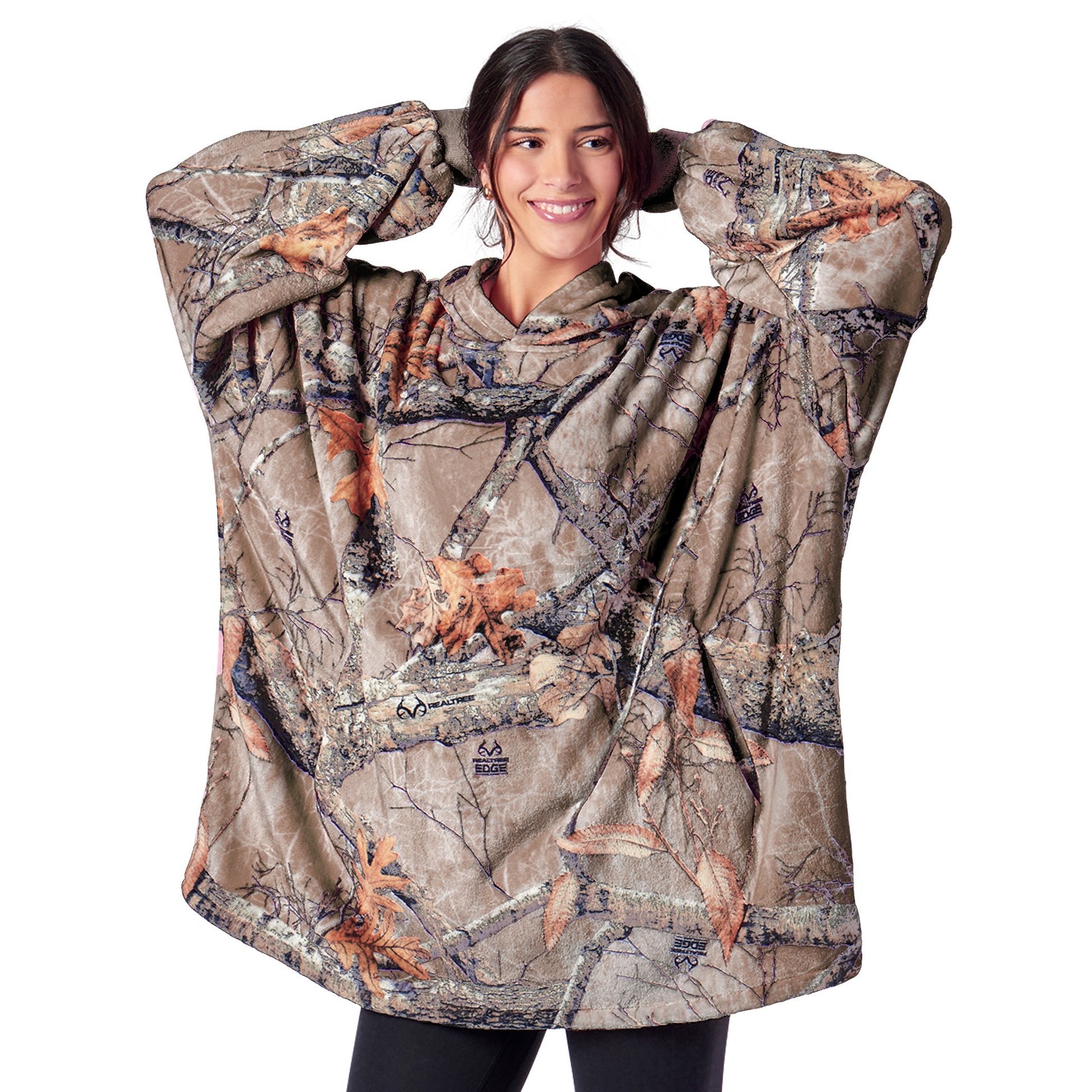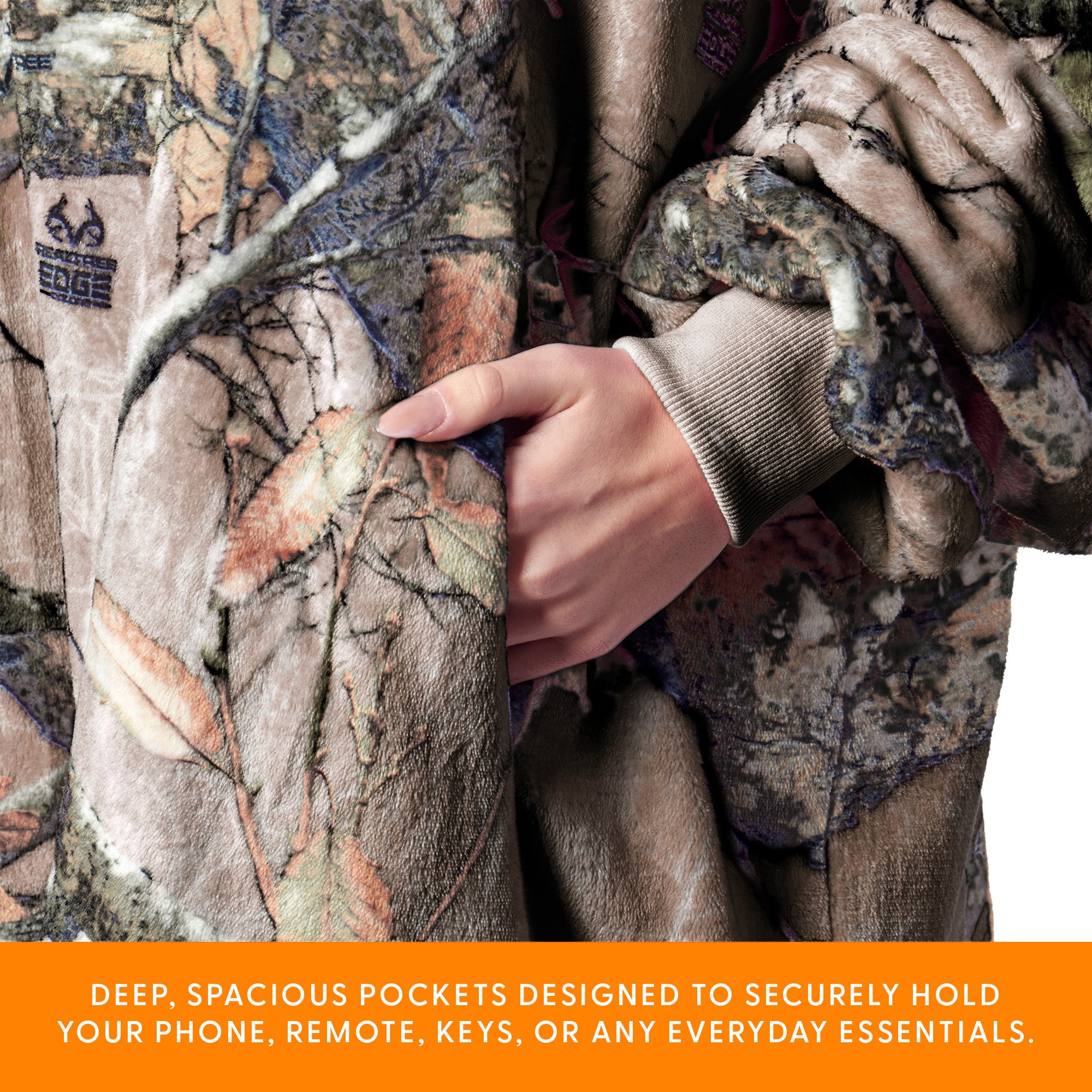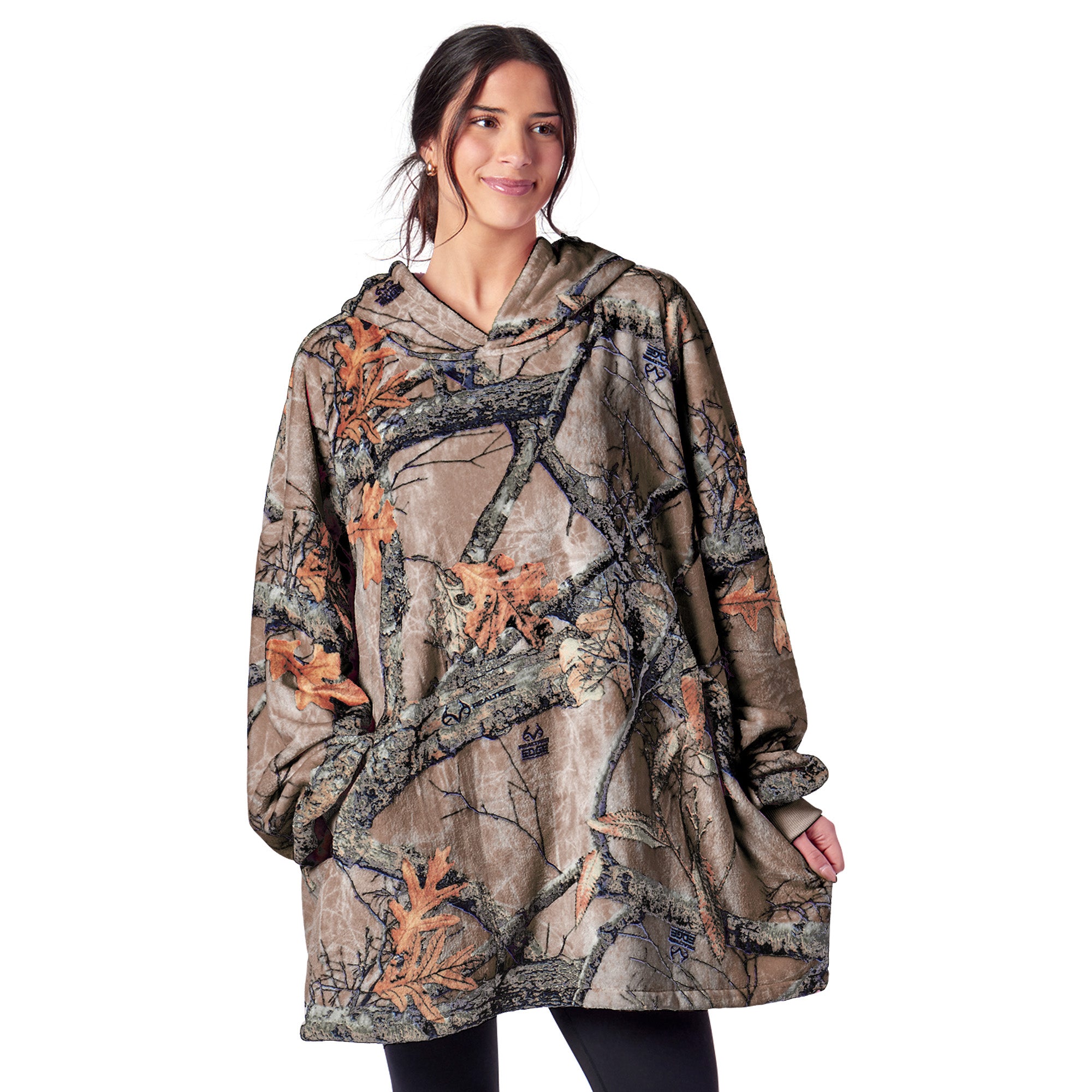 • Features an ofically licensed Realtree pattern with oversized fit and a large front pocket.